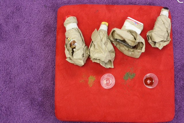 this time we had cinnamon, lemon oil, vanilla and dill. after we passed them around at circle time, we left them out for friends to keep on smelling and guessing.