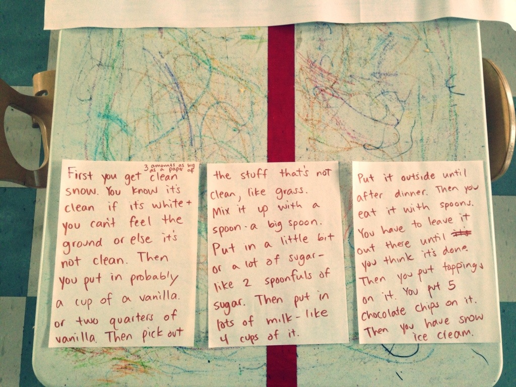 s is for snow ice cream. Posted byMs KristinFebruary 7, 2014Posted inThe Daily Update in case you want a recipe for snow ice cream, here’s a preschool version: share: Click to share on Facebook (Opens in new window) Facebook Click to email a link to a friend (Opens in new window) Email More Click to share on Pinterest (Opens in new window) Pinterest
