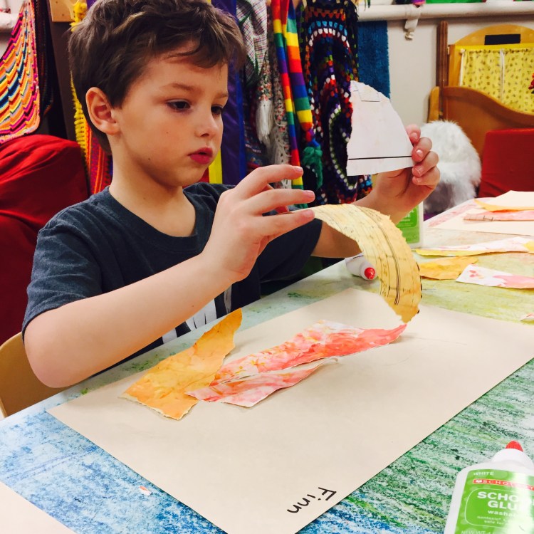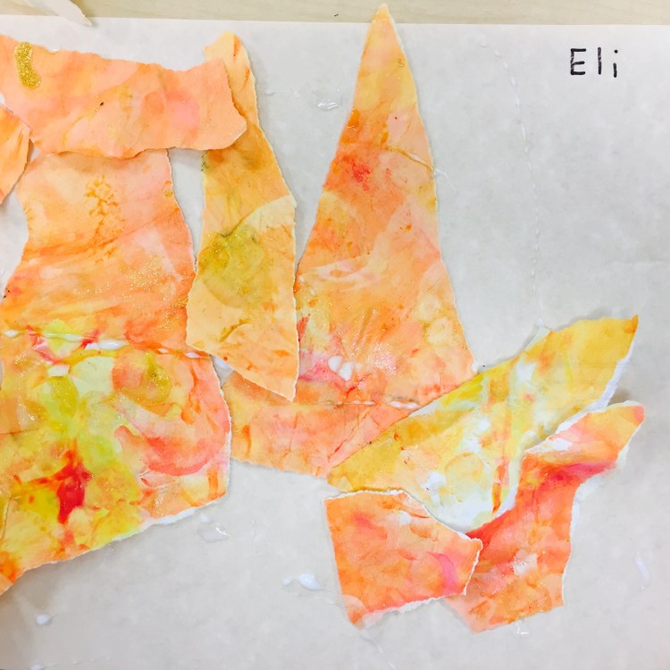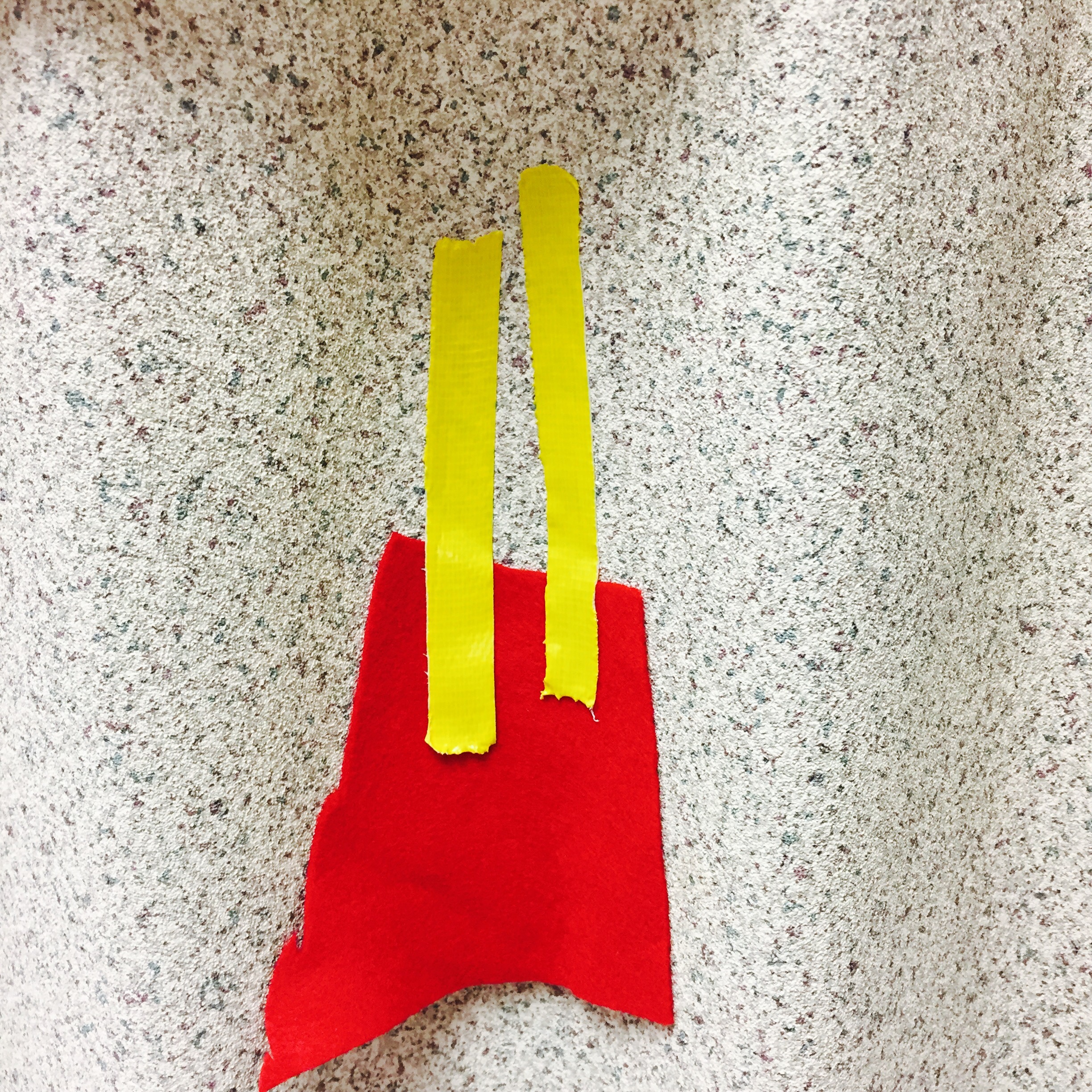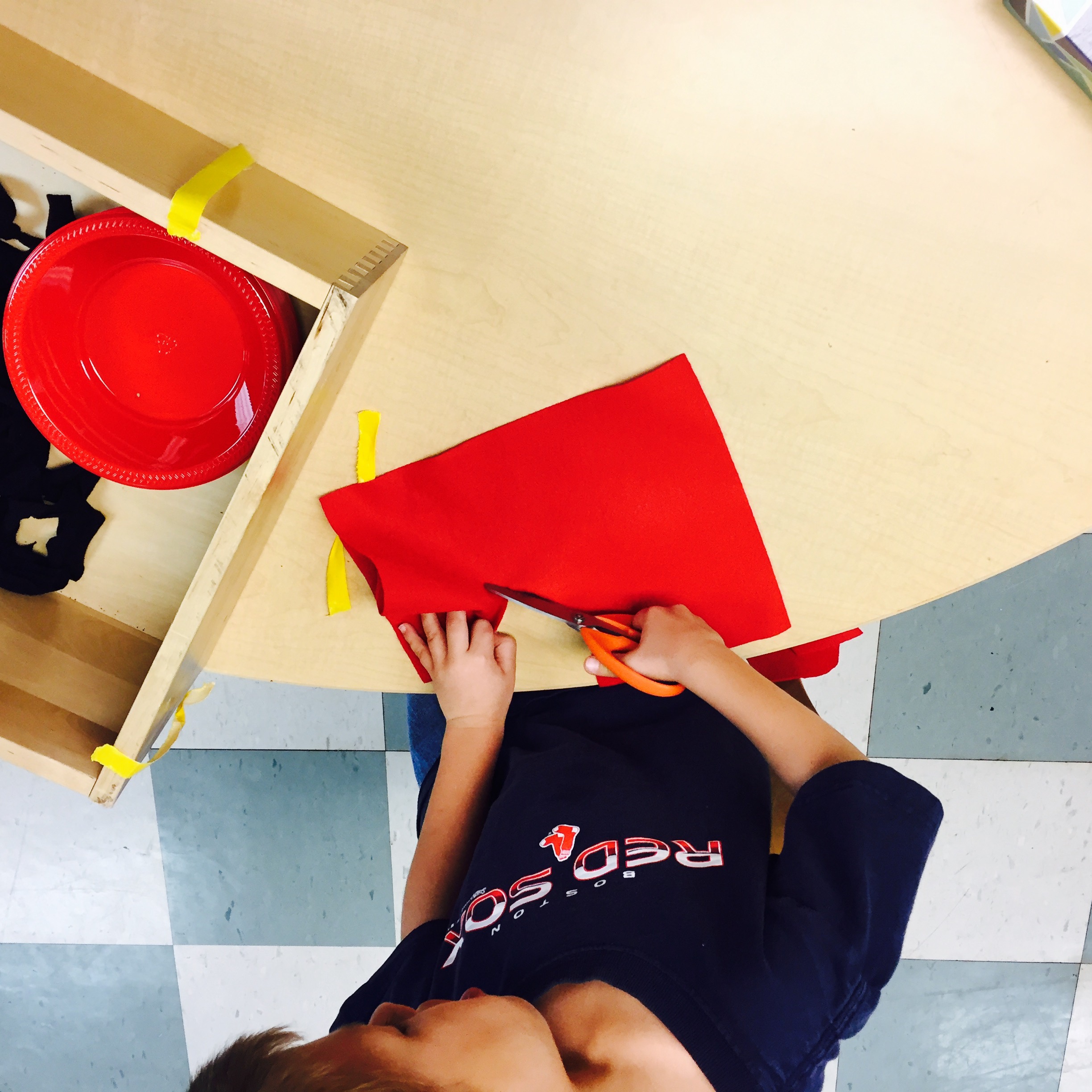 another impromptu activity: cutting red felt and yellow duct tape to make fire for the classroom.