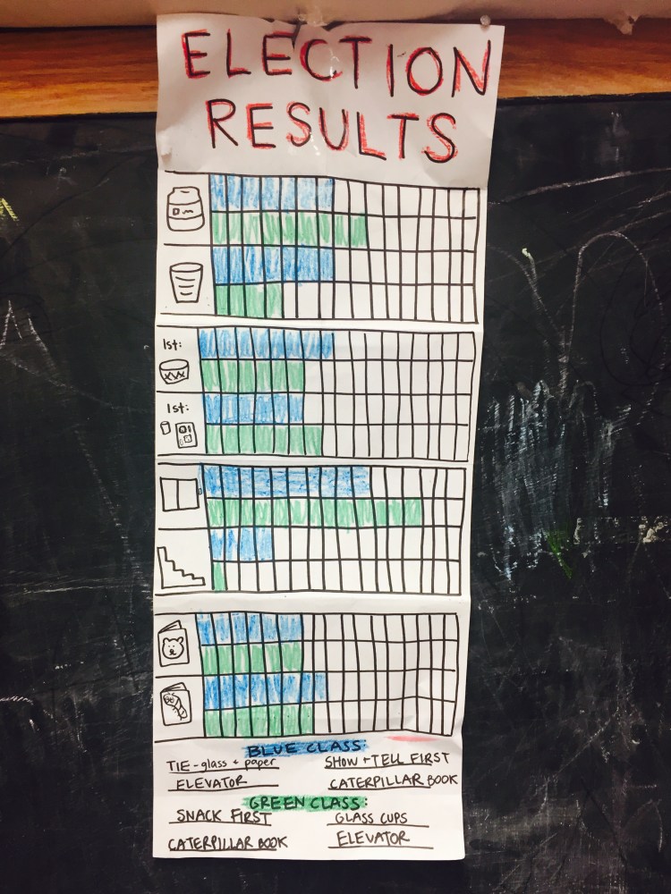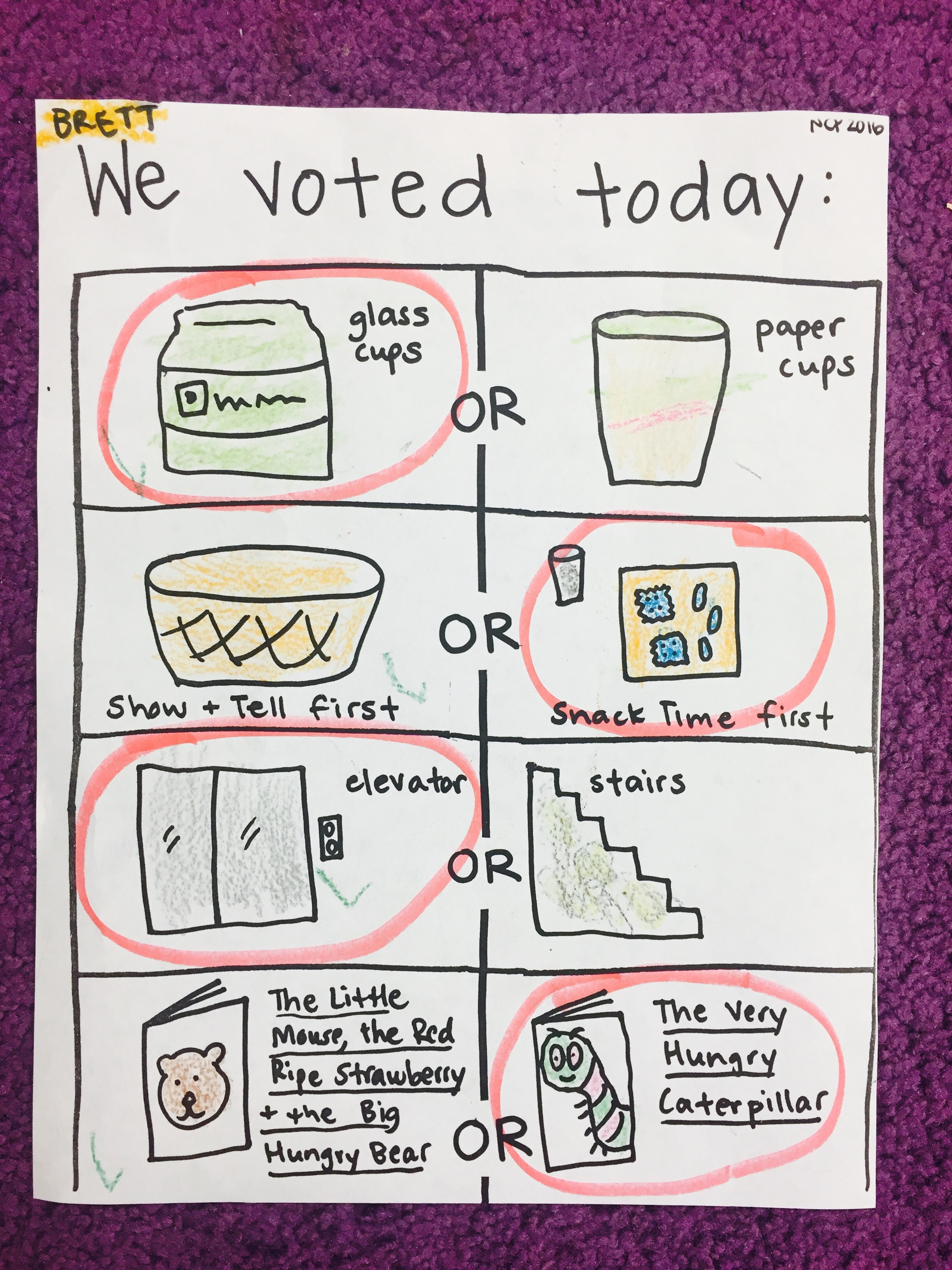 In our classroom, we will vote on several things throughout the day, experiencing voting privately, counting ballots and determining the outcome of issues such as: