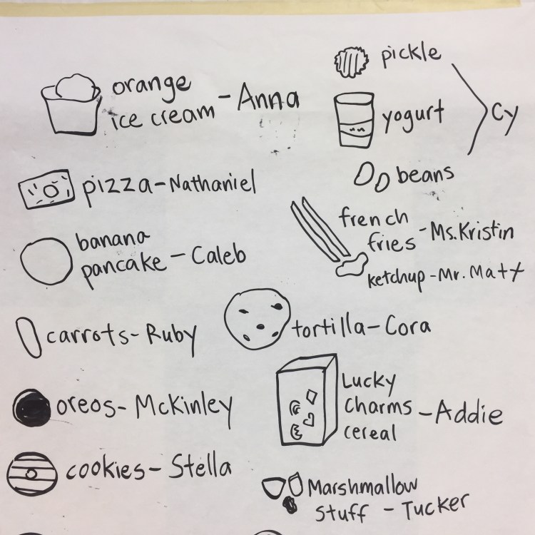 we had our annual “i like to eat…” thanksgiving feasts where people bring favorite foods! this is the information families are given: