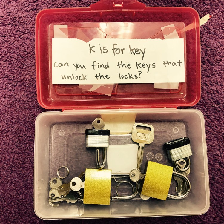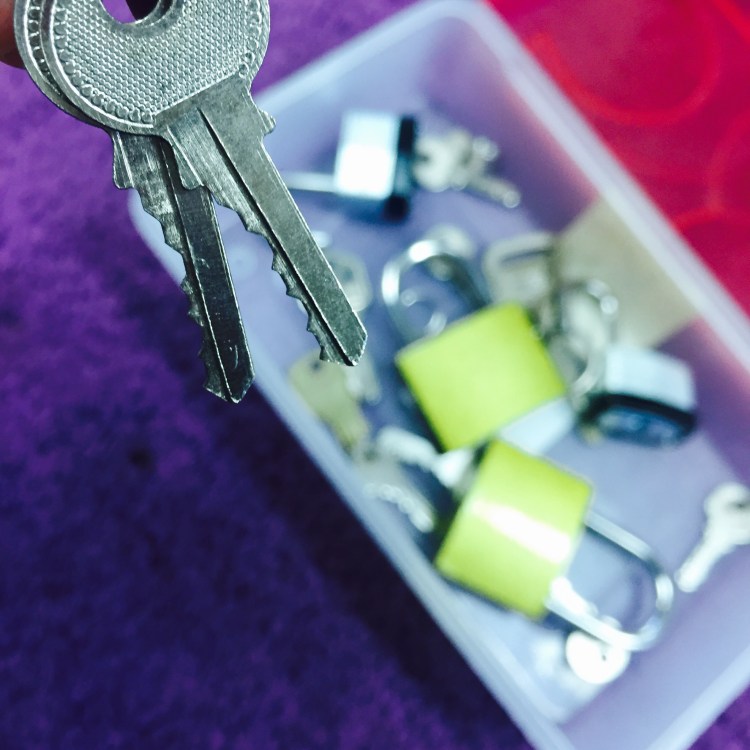 our alphabet box was a tricky one: four locks and 13 keys…tricky, tricky.