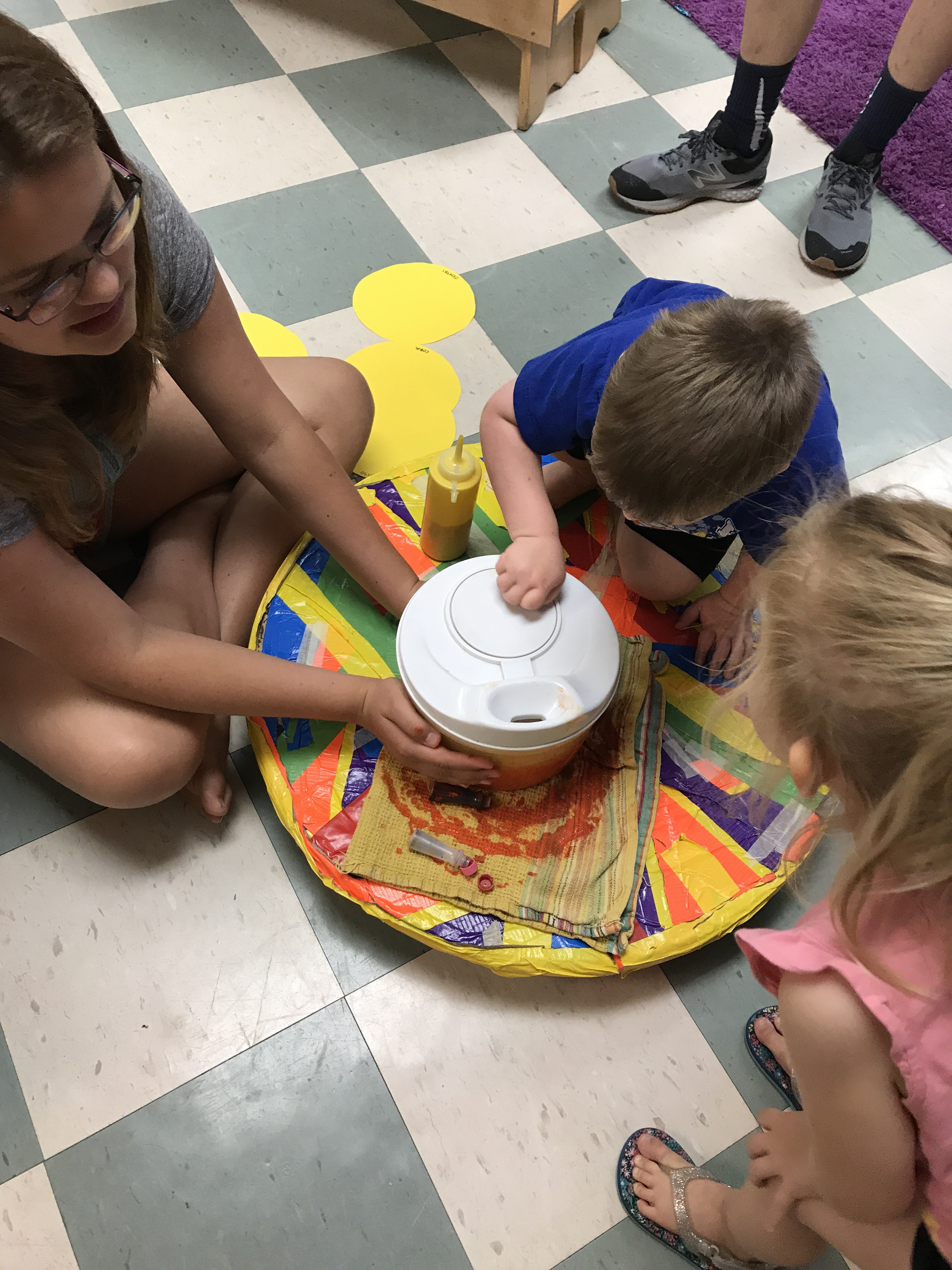 we did sun painting with a salad spinner and sky painting with art rollers.