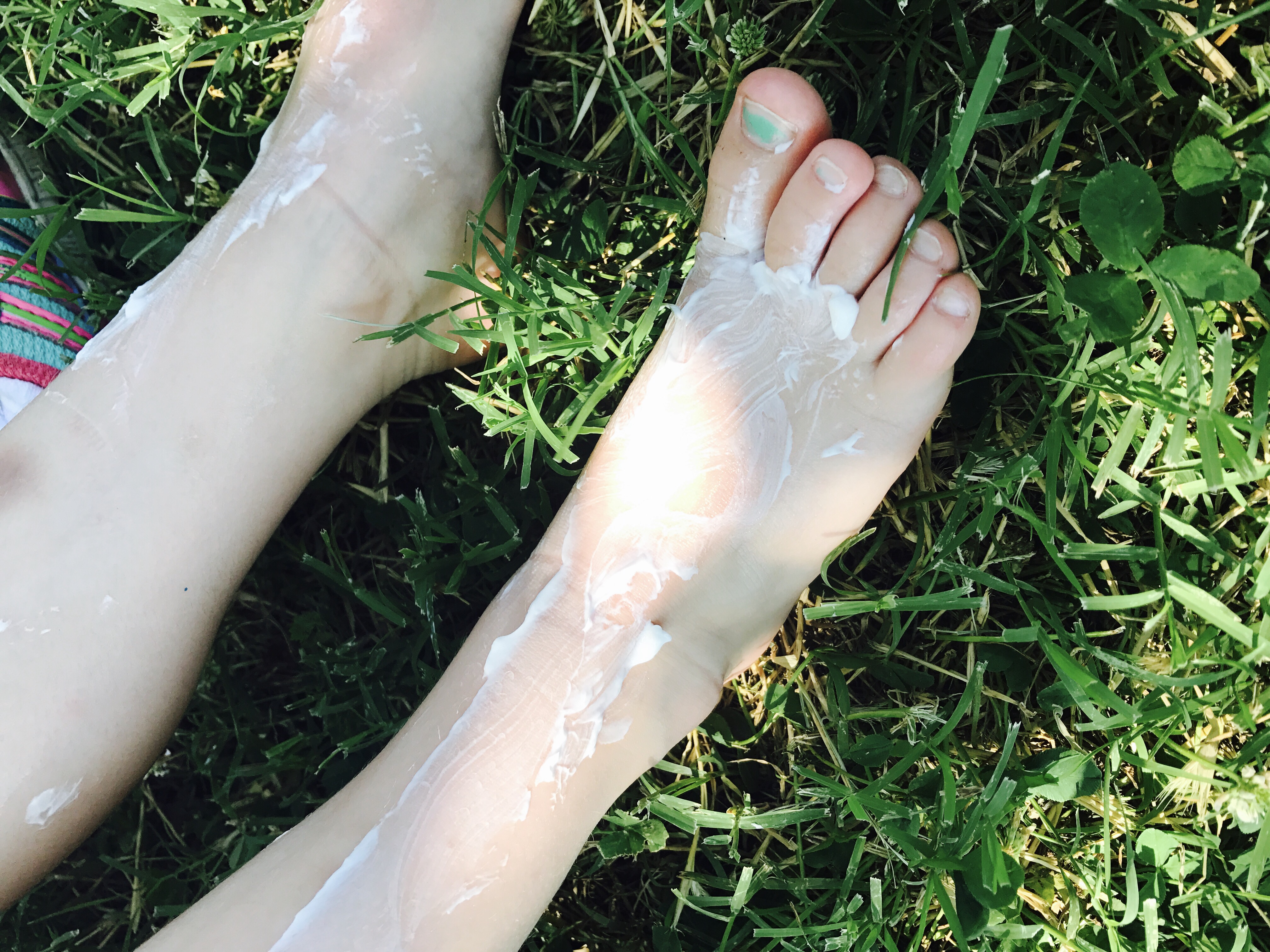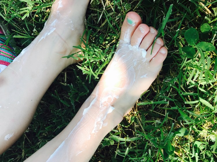 and finally, while still outside under the mulberry tree, we added a summer blessing and glitter to our sun and sky paintings…and our lotion legs.