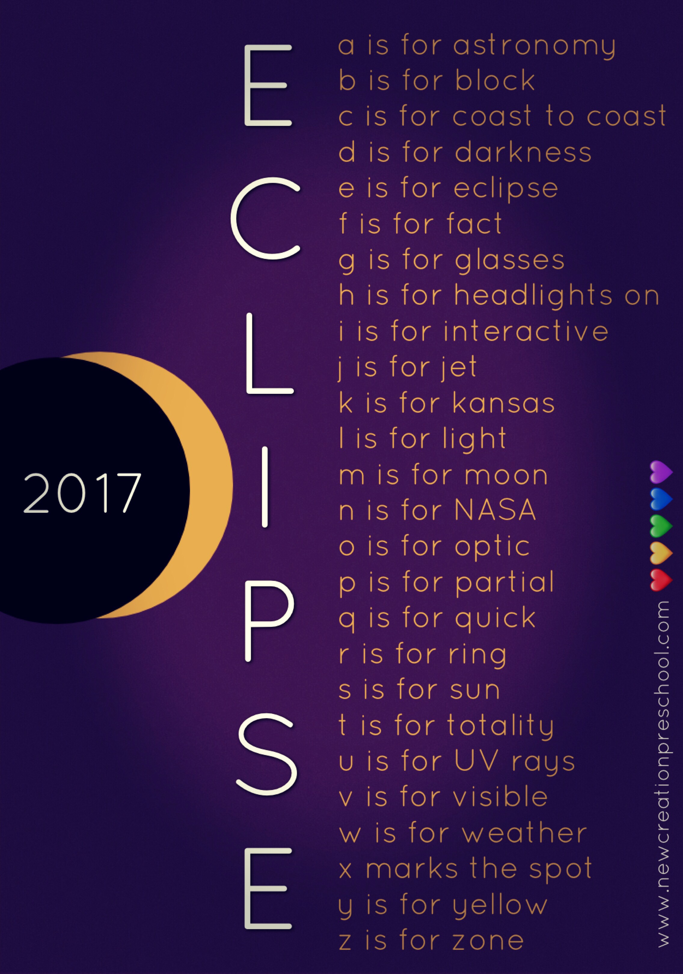 e is for eclipse Posted byMs KristinAugust 21, 2017Posted inThe Daily Update share: Click to share on Facebook (Opens in new window) Facebook Click to email a link to a friend (Opens in new window) Email More Click to share on Pinterest (Opens in new window) Pinterest