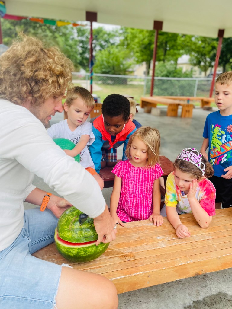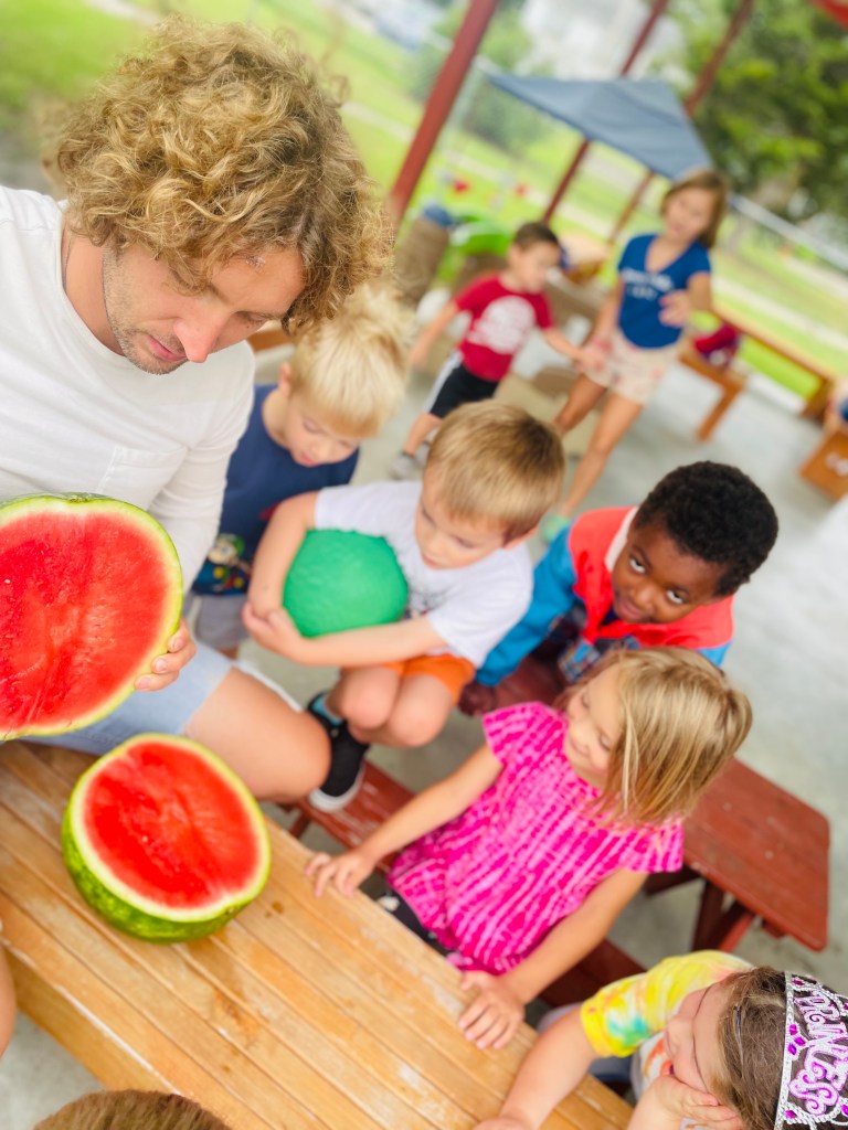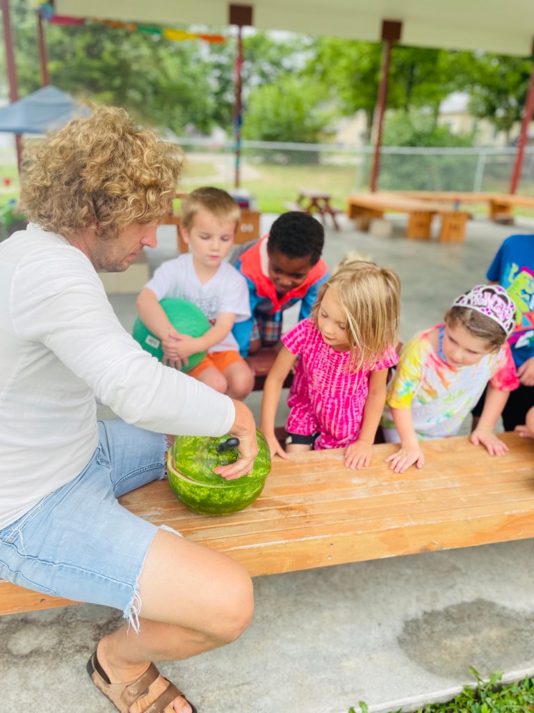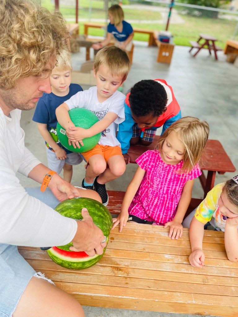 We had four cameras going strong today to document the next group’s Watermelon Play Day. Read on to find out more including the answer to why 3/4 of the class was wrong today!