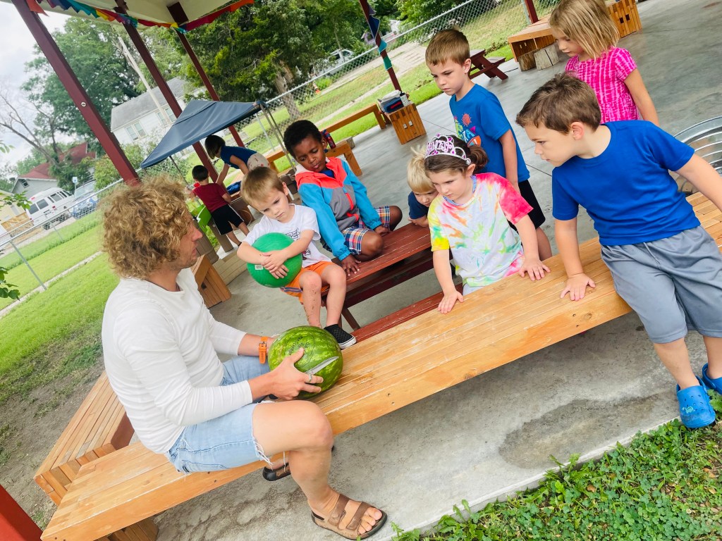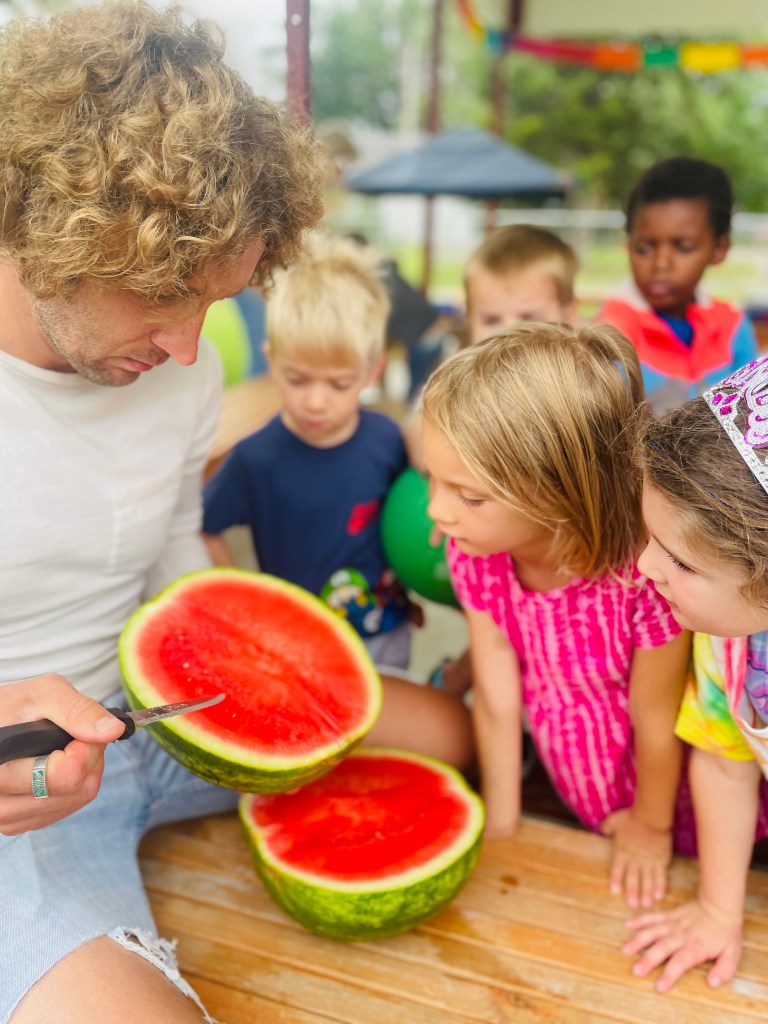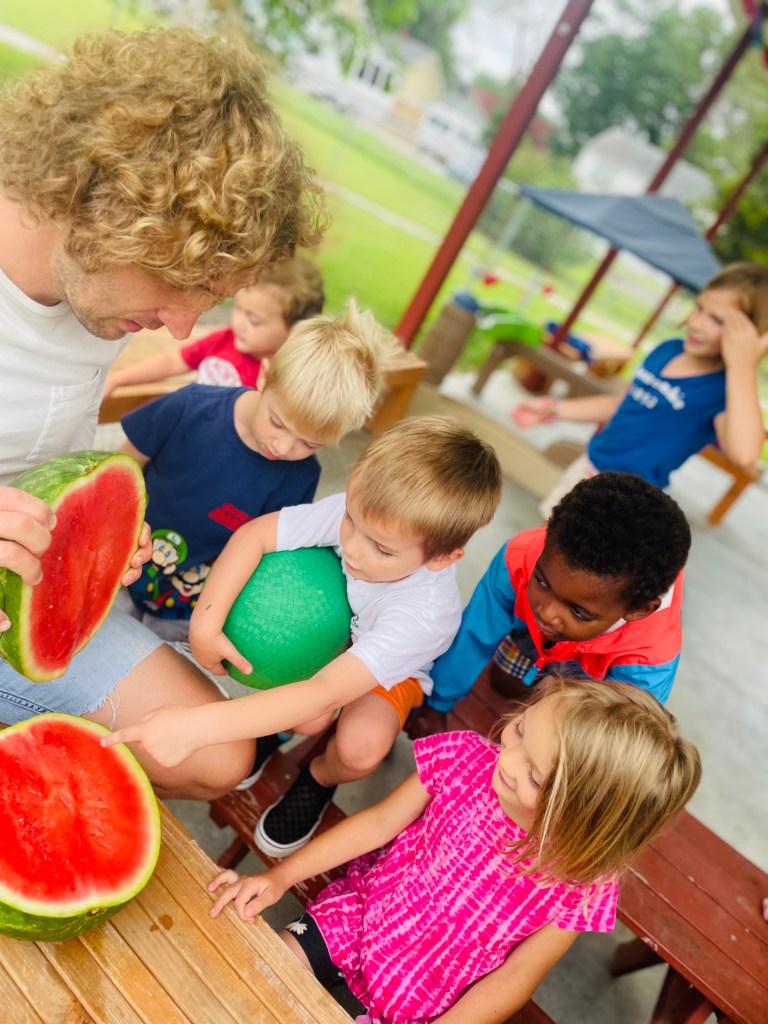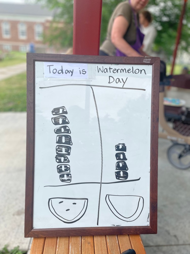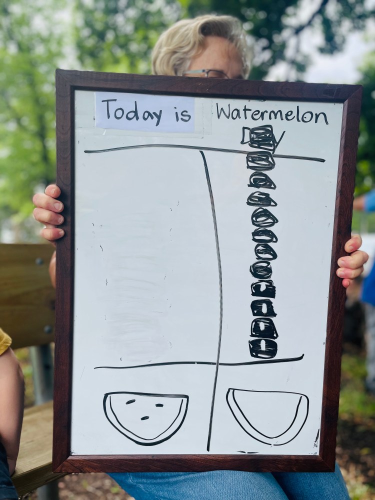 We had four cameras going strong today to document the next group’s Watermelon Play Day. Read on to find out more including the answer to why 3/4 of the class was wrong today!