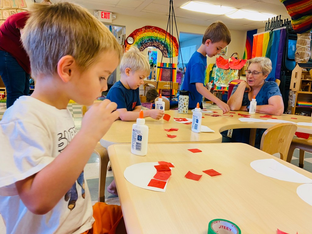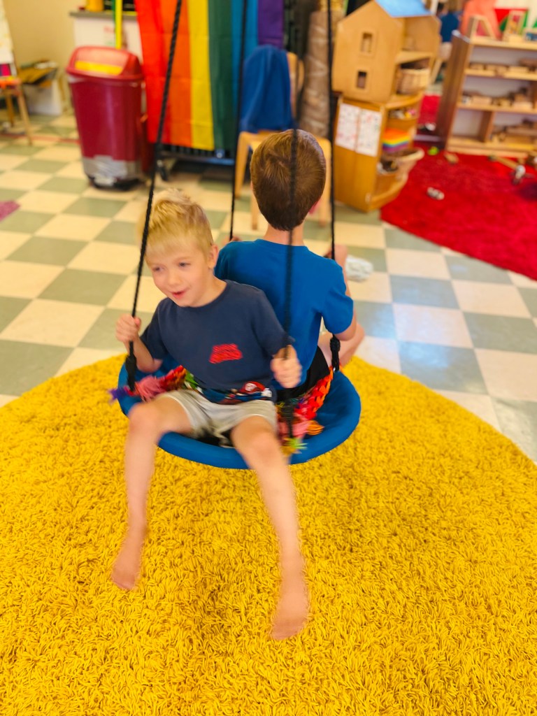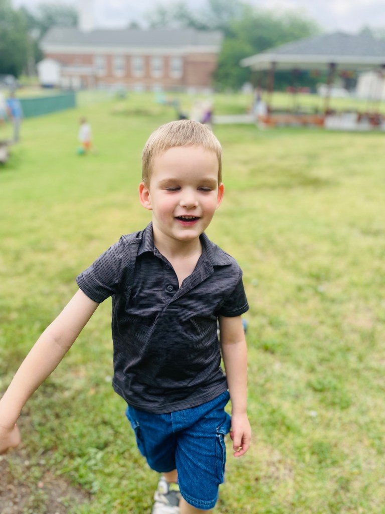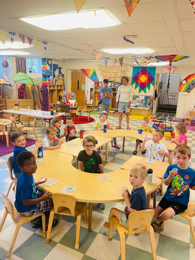 Who had their very first day of preschool today? One friend’s little brother! Play Days are only for last year’s students and any siblings enrolled in next year. The oldest friend will go to Kindergarten in fall so it is special that they can be at preschool together this month. He fit right in and “seems like a regular preschooler.”
