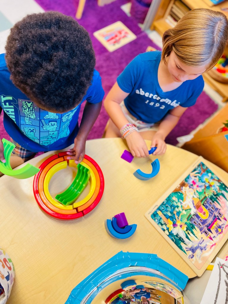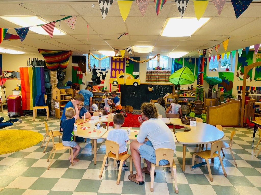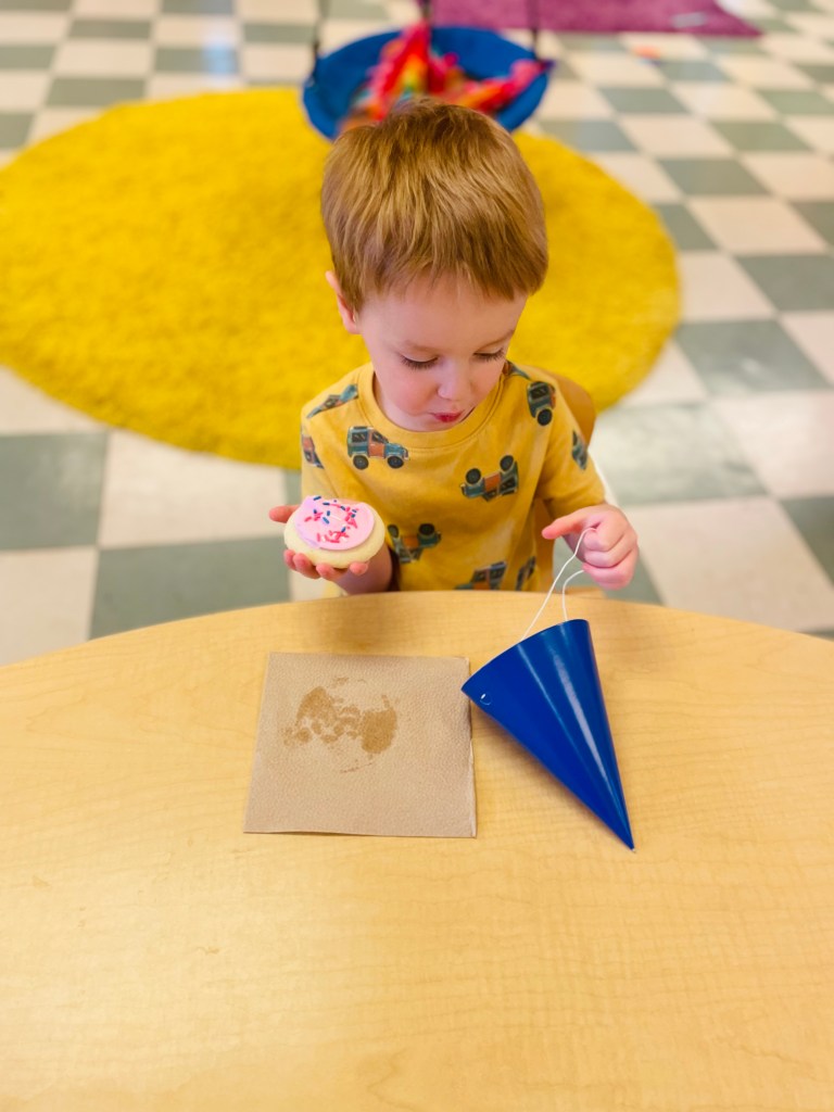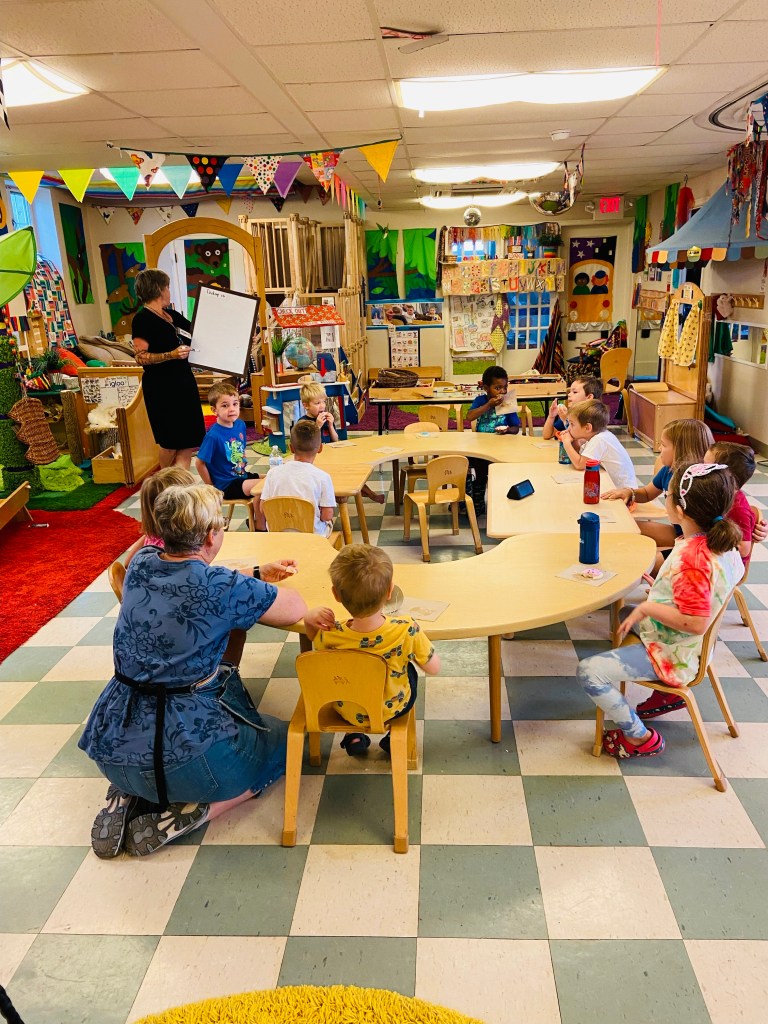 Who had their very first day of preschool today? One friend’s little brother! Play Days are only for last year’s students and any siblings enrolled in next year. The oldest friend will go to Kindergarten in fall so it is special that they can be at preschool together this month. He fit right in and “seems like a regular preschooler.”