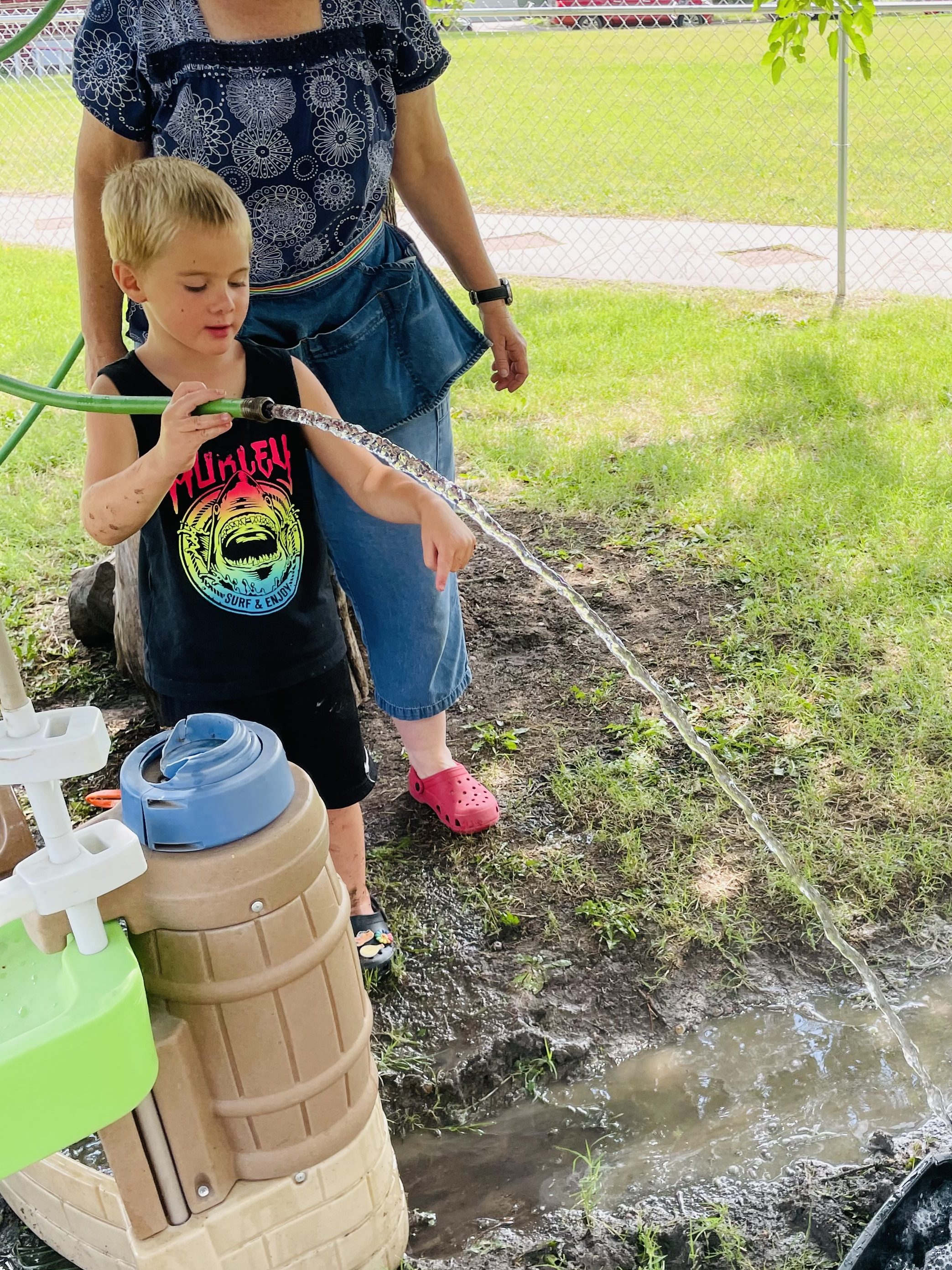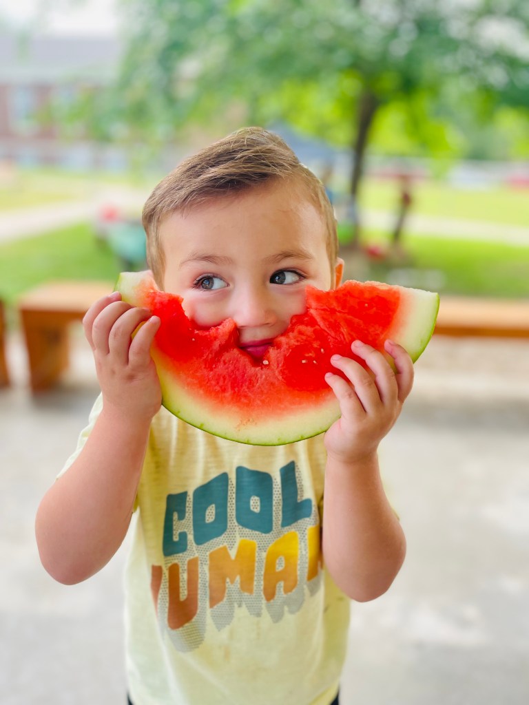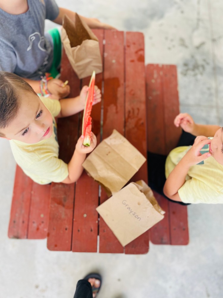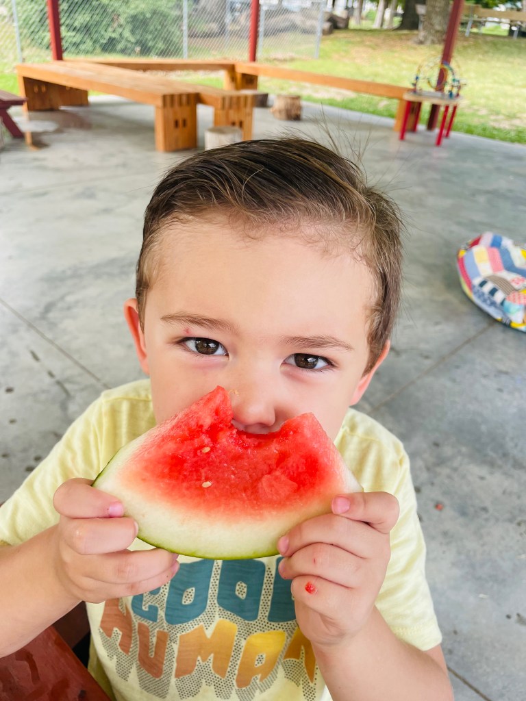 Along with the 3 gummy bears each, we had our animal crackers and watermelon (Ms Kristin forgot she bought another watermelon last week so we had extra!) with water play on the side.