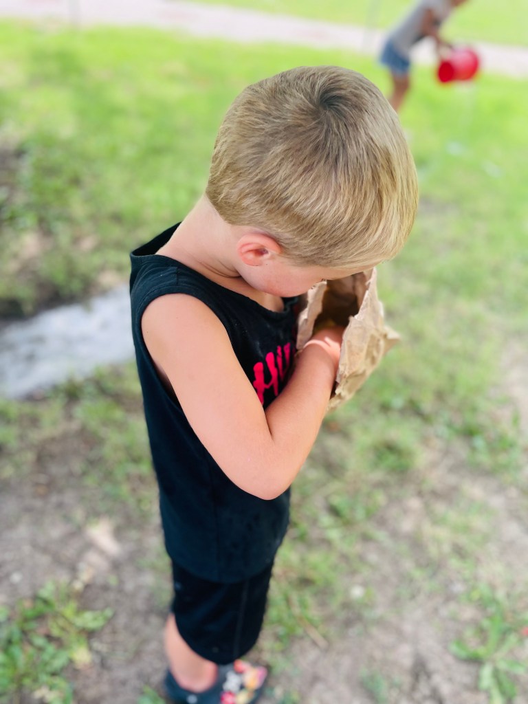 What is the funny thing about who brought the gummy bears? Grandma Bonnie bought them for us but she wasn’t at preschool so we said thank you really loudly in the classroom. Then when we were outside eating our snack and playing, Grandma Bonnie stopped by!