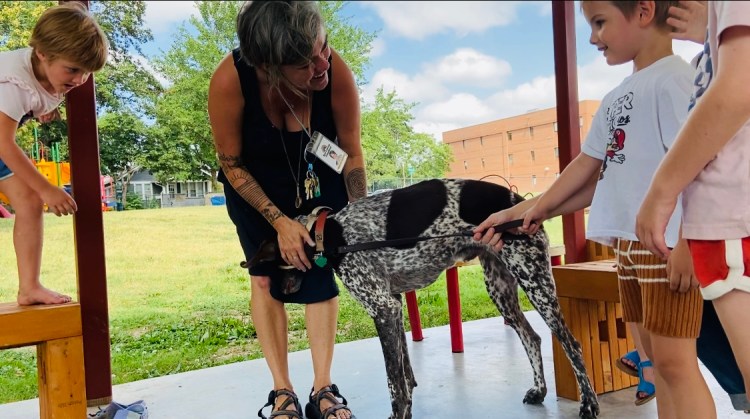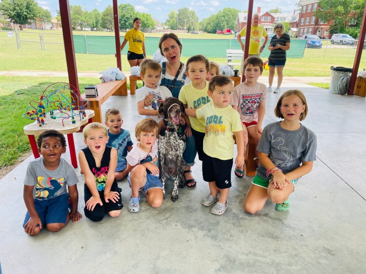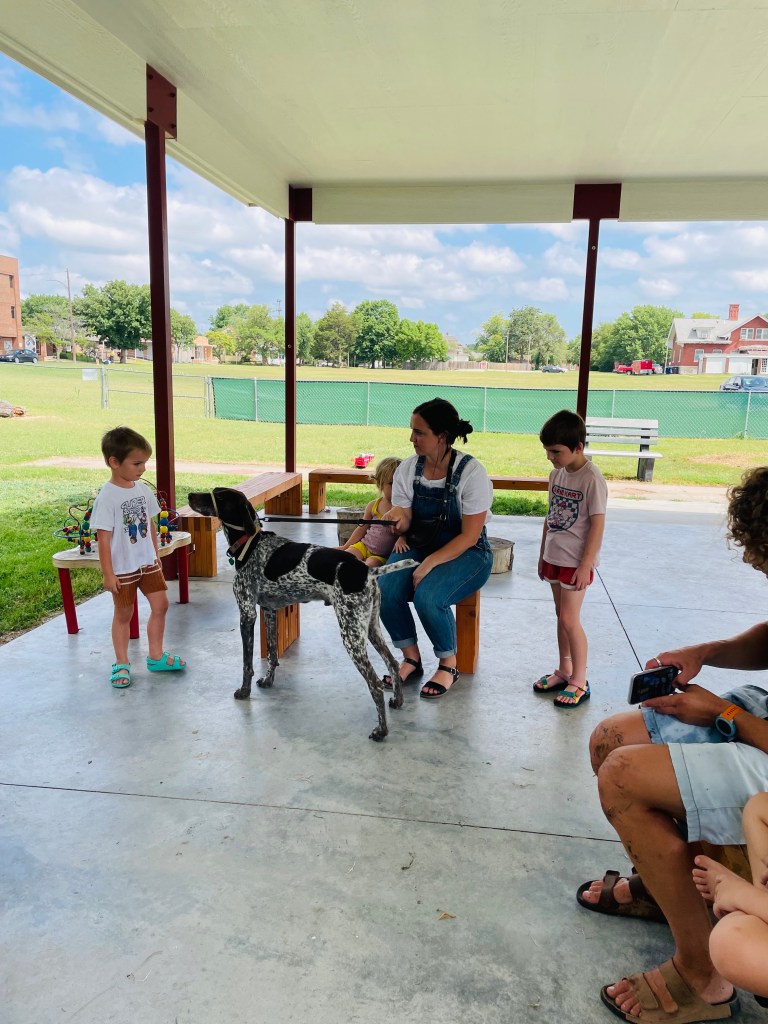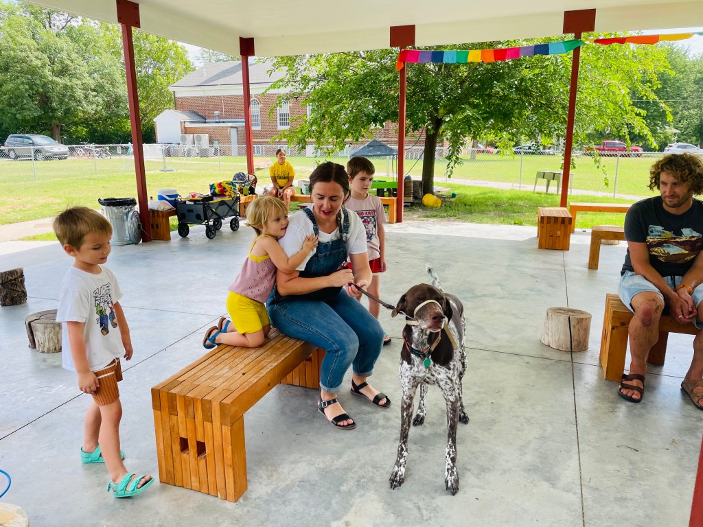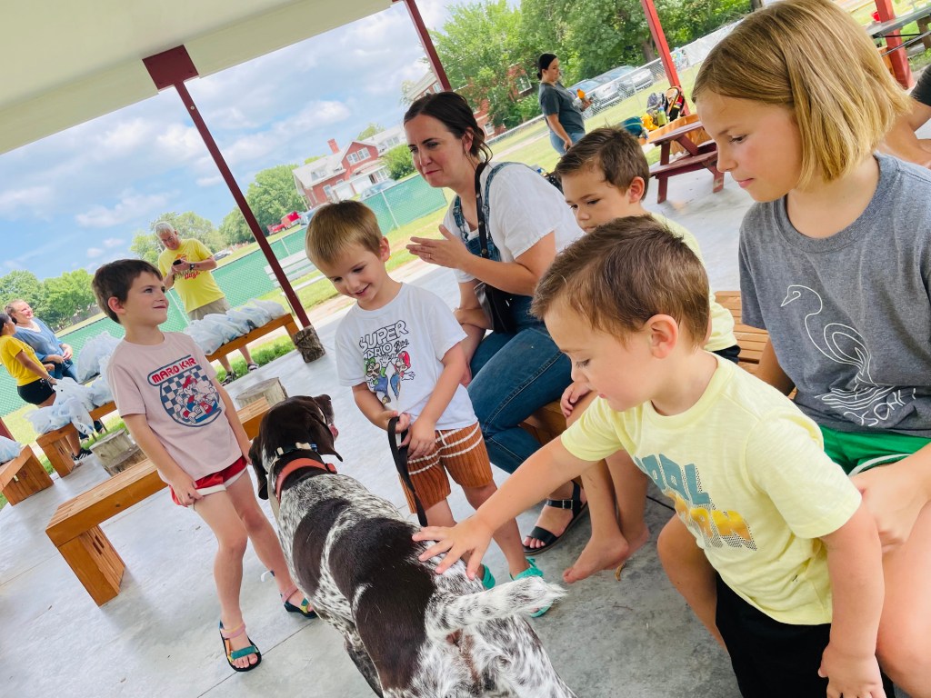 Who came to visit at the end of the day? Henry’s dog named Moose (middle name is Tiger)! Moose is 8 years old and very friendly. Henry walked him around so we could let Moose sniff our hands. We found out that he is an omnivore and likes to go on the white chair at his house. He sleeps in a brown bed in mom’s room and drinks water.
