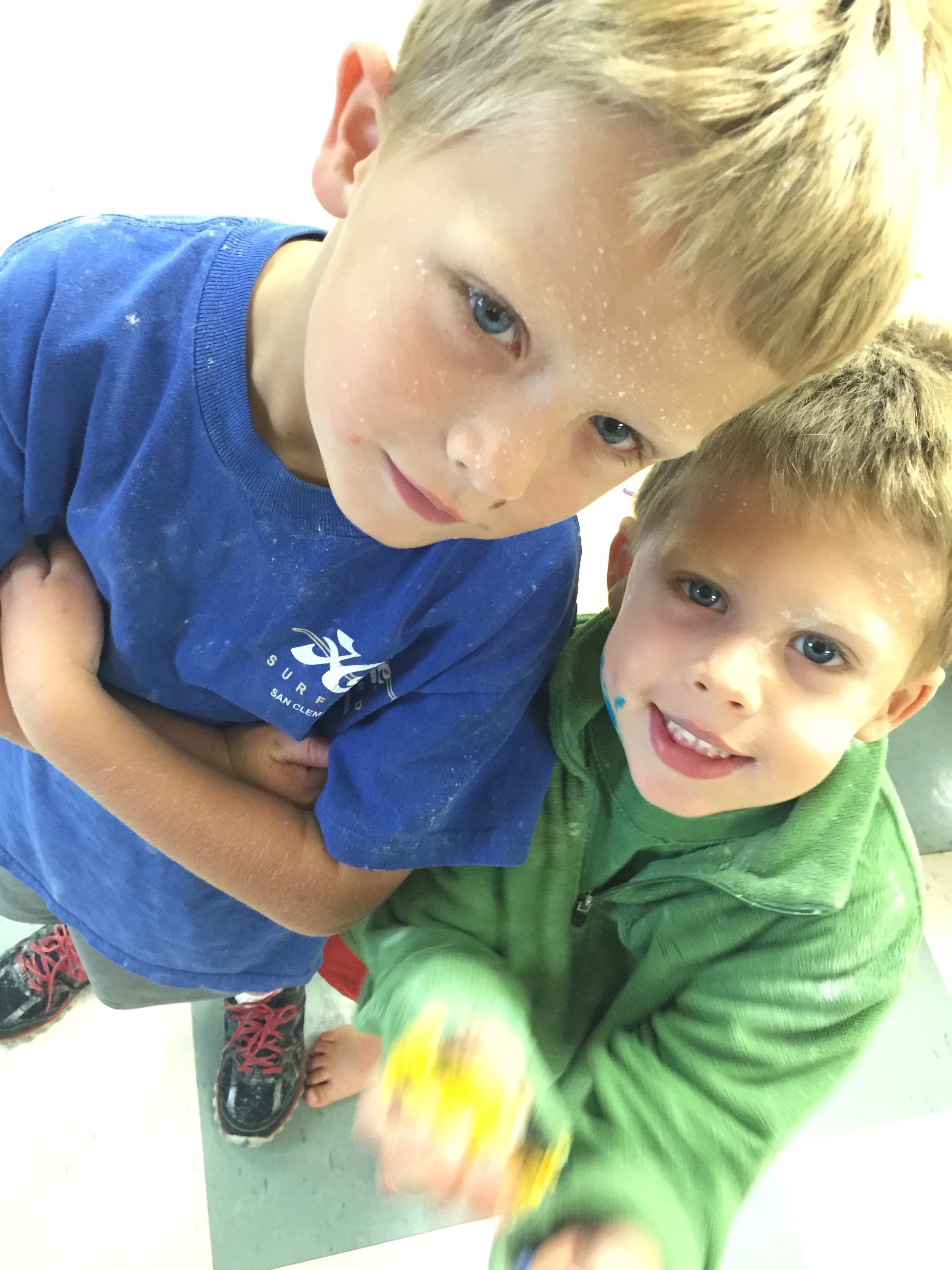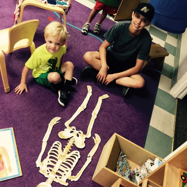 Today was the first of four summer “play days” at preschool. These days are for last year’s preschool friends, giving us another chance to be together as a 2014-1015 school family. The tricky thing is that they were from different classes, so the first thing we did was figure out who was from what class (red, purple, green and orange…the two blue friends are my kids who were at their own schools last year). These friends had seen each other’s photos all year long on our picture boards and I had fun watching them together.
