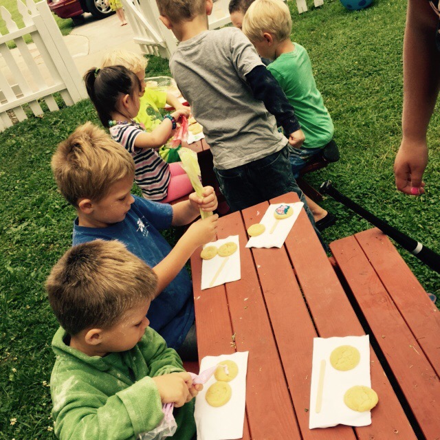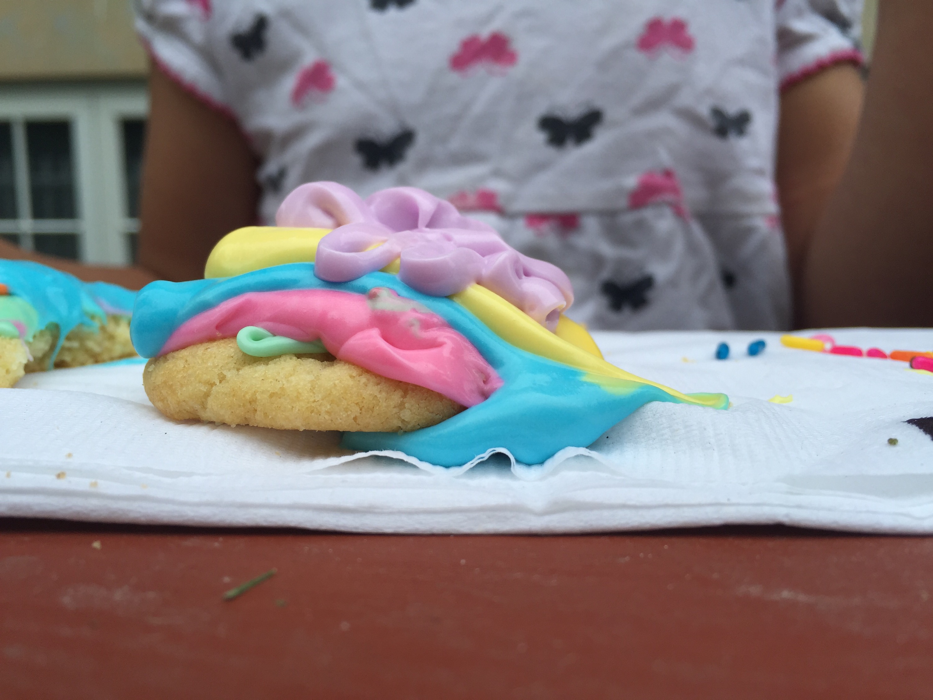 We stayed outside and decorated mini sugar cookies, 12 shades of frosting, two kinds of sprinkles and a vague boundary on how many cookies to use. Some made extras to take home, some didn’t eat any at all.