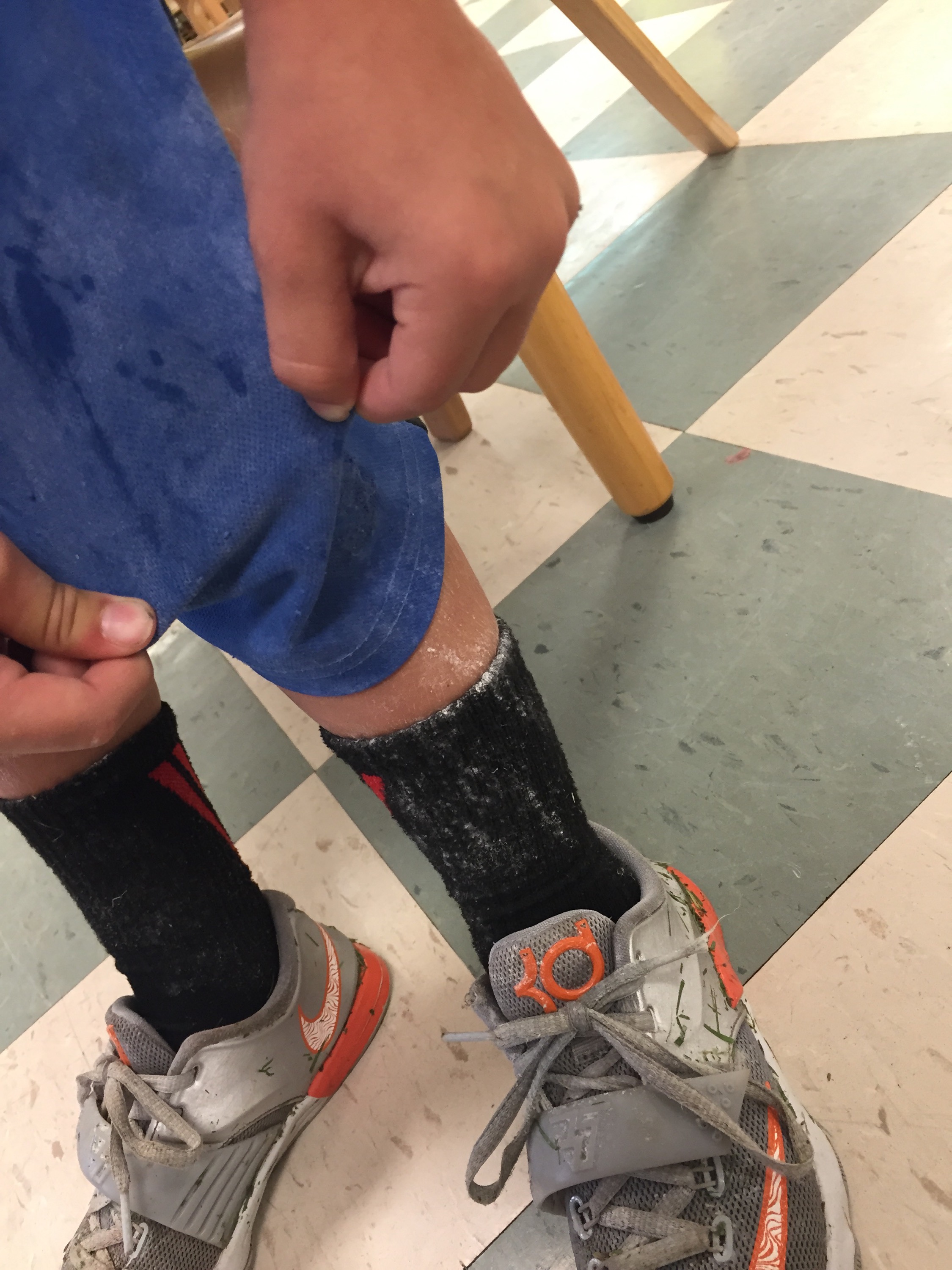Next came the flour, Kleenex and baseball bats. We loosely twisted the Kleenex around a small pile of flour to use as balls. There was also a complete free for all with throwing flour at each other. I was too busy getting doused with flour to take pictures so some after shots will have to do: