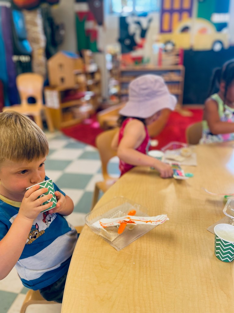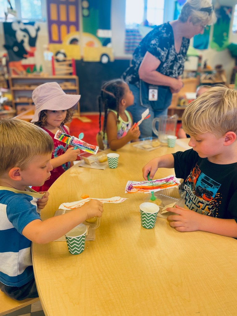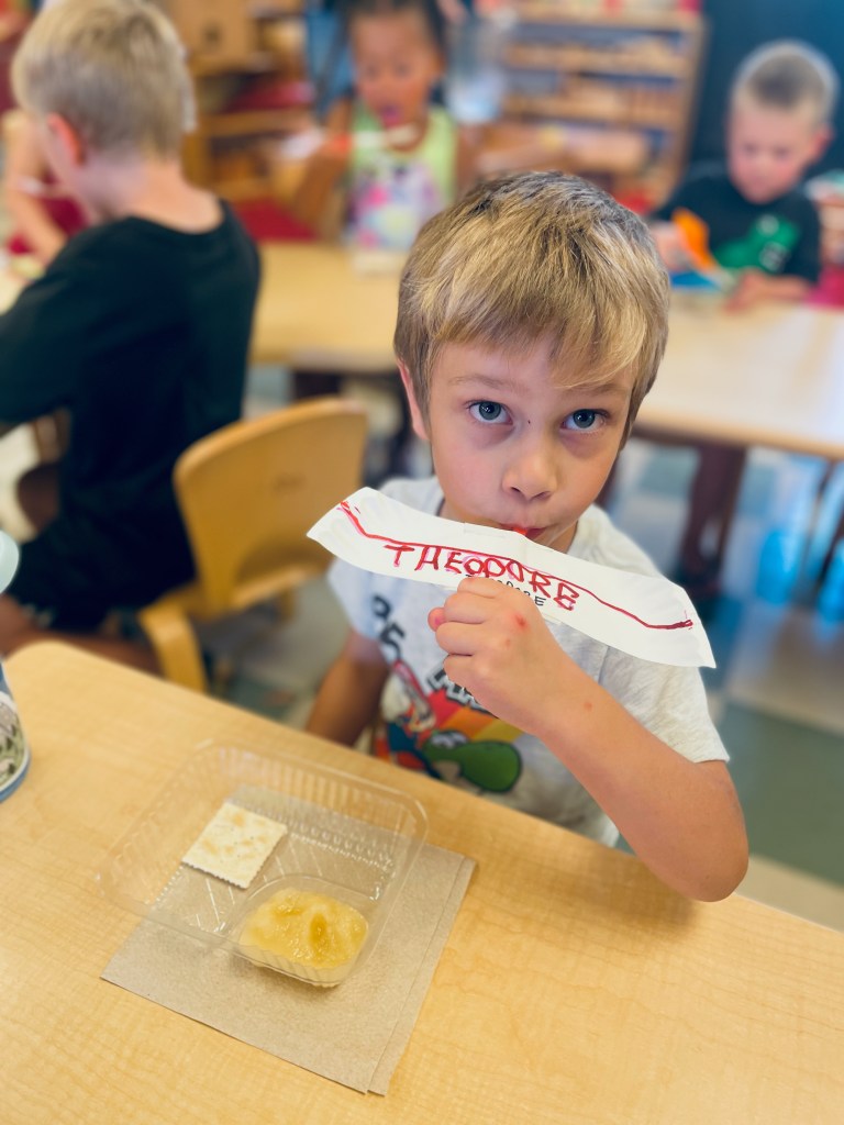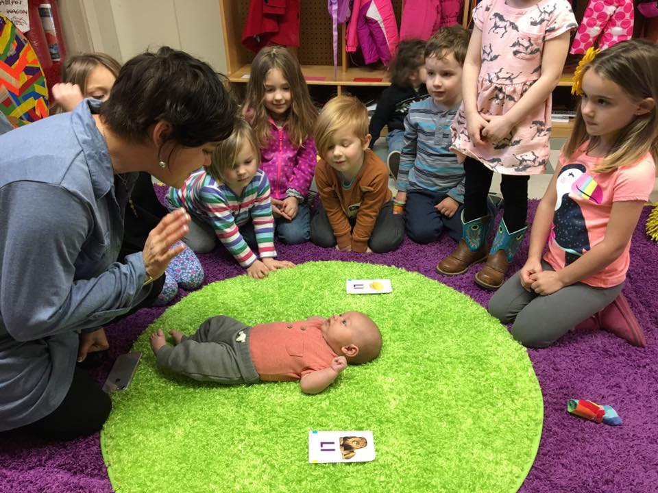 What did you do with your airplane spoons? Took them inside and ate applesauce with them! We talked about people (infants, elderly and all ages in between) who may be fed by spoon. There was a lot of sweet sharing about taking care of babies and recalling stories of being babies ourselves.