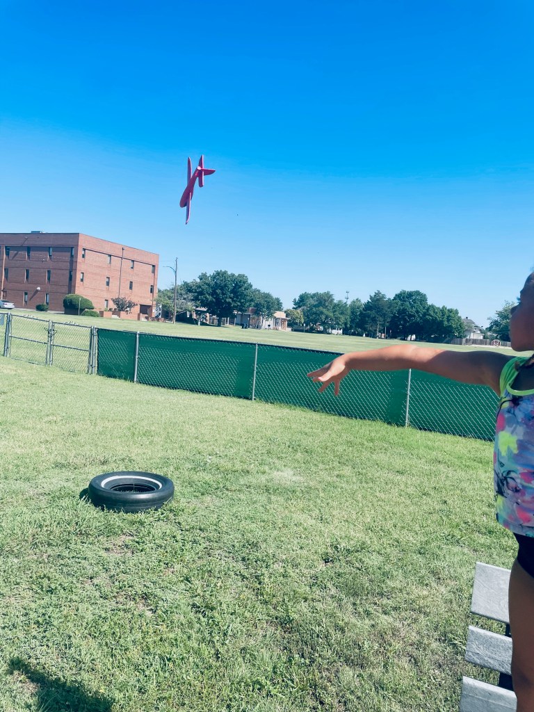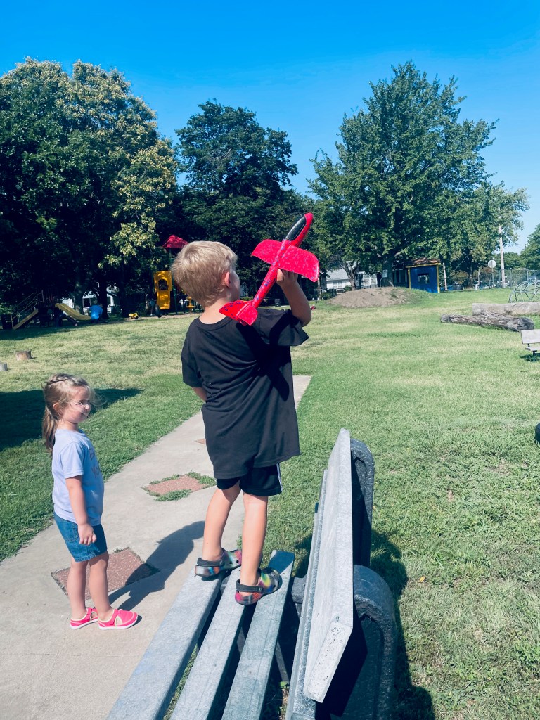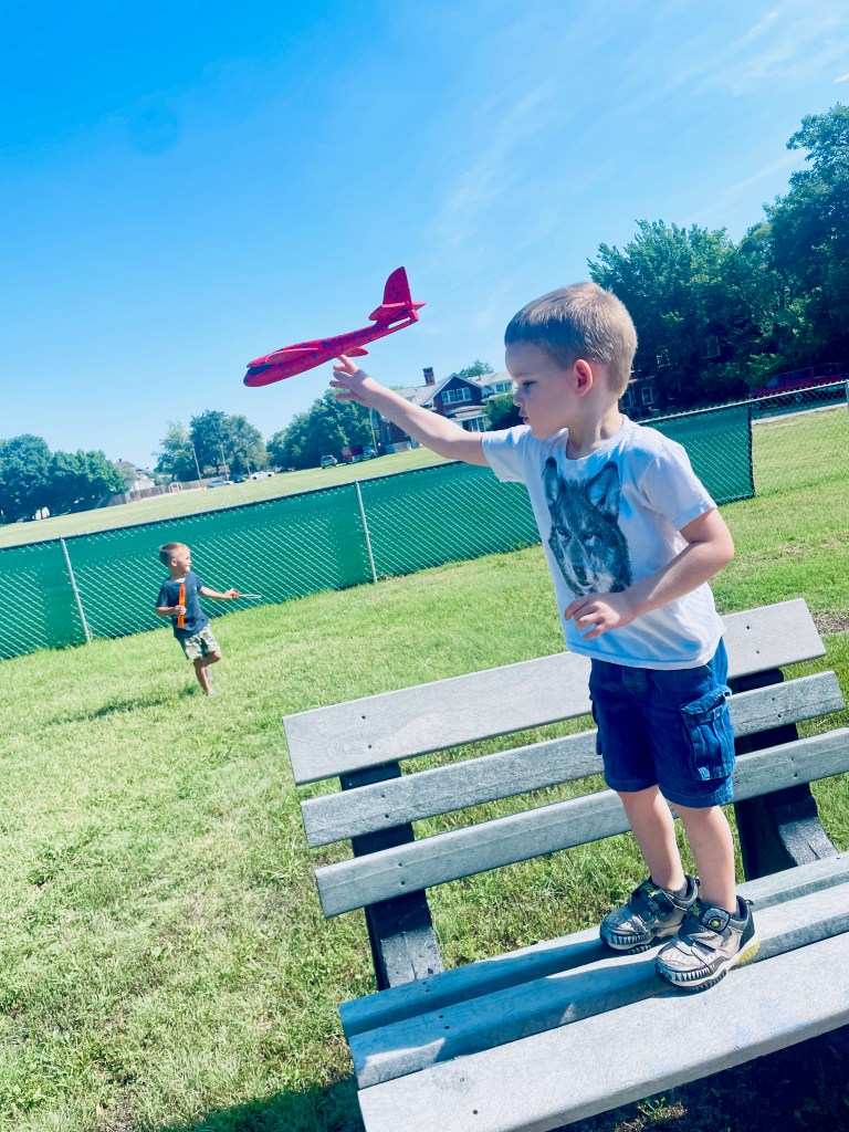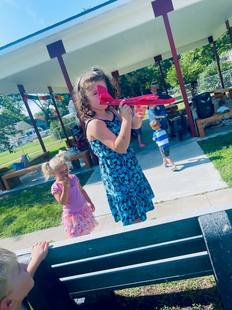 Who got to blow the bubbles today? Anyone who wanted to! Often the teachers are the bubble blowers and the children are the bubble chasers, but today children blew bubbles too. The airplane flew right through them many times!