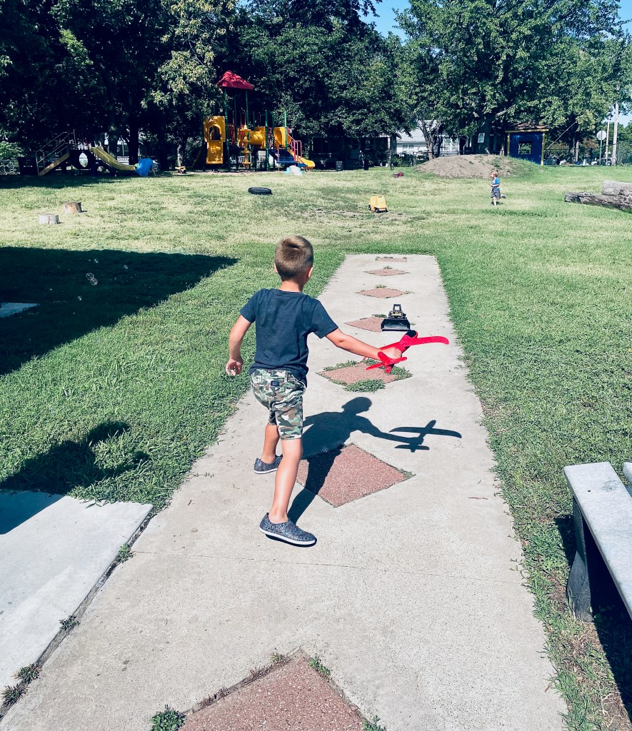 After last week’s wonderful experience of starting our day outside, we did it again. Along with an airplane project, we had books, puzzles, water play, vehicles, chalk and bubbles. Read on to find the answers to 5 questions about today.