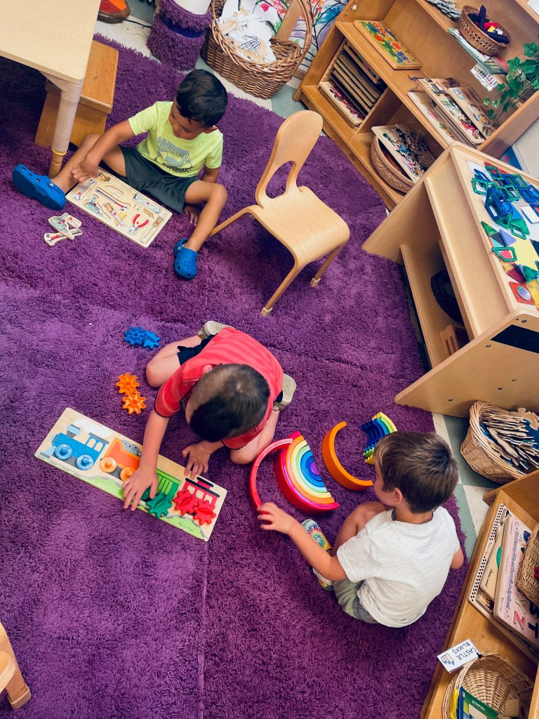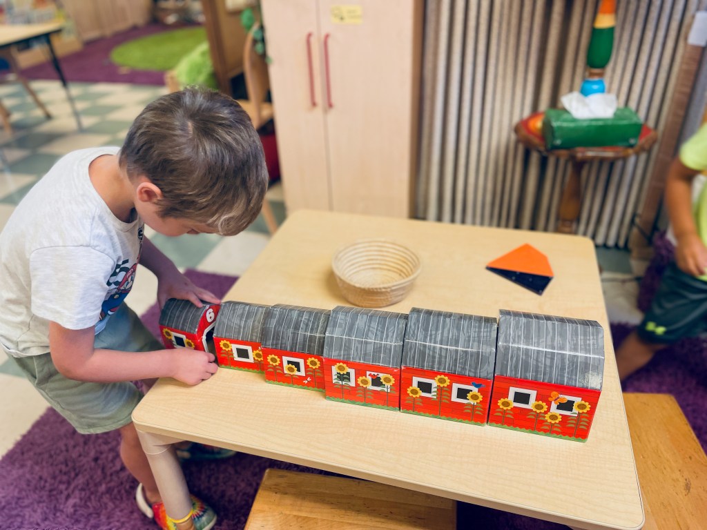 Did you want to stay inside or go outside to play after snack? After (and during) Snack Time, we had wonderful indoor cozy play. When Ms Kristin announced that it was time to go back outside to play before the grown ups came, there was disappointment expressed. So Ms Kristin asked every child if they’d rather go outside or stay inside. Everyone said to stay inside! So even though it was only an extra 10 minutes, they played happily with puzzles, dolls, animals, cars, pretend computers, hiding in a pretend tornado shelter and building a Komodo Dragon den. What a sweet group of children.
