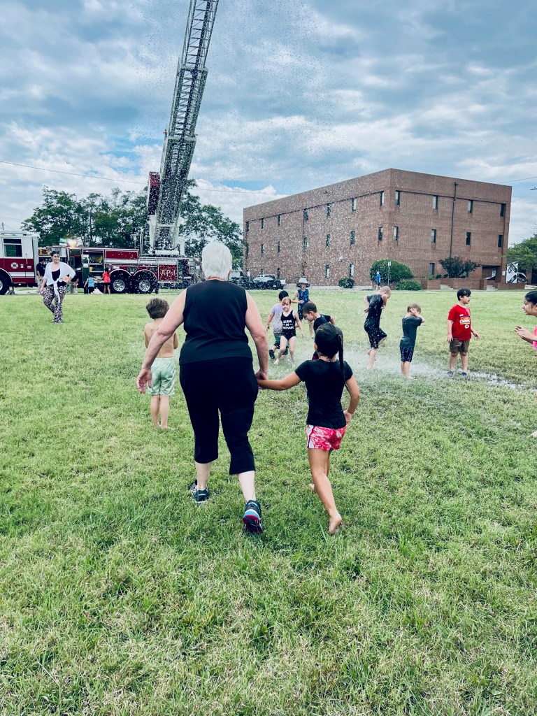 As Grandma Bonnie was going inside, she couldn’t resist playing in the firetruck’s spray. A mama sent me this sweet picture.