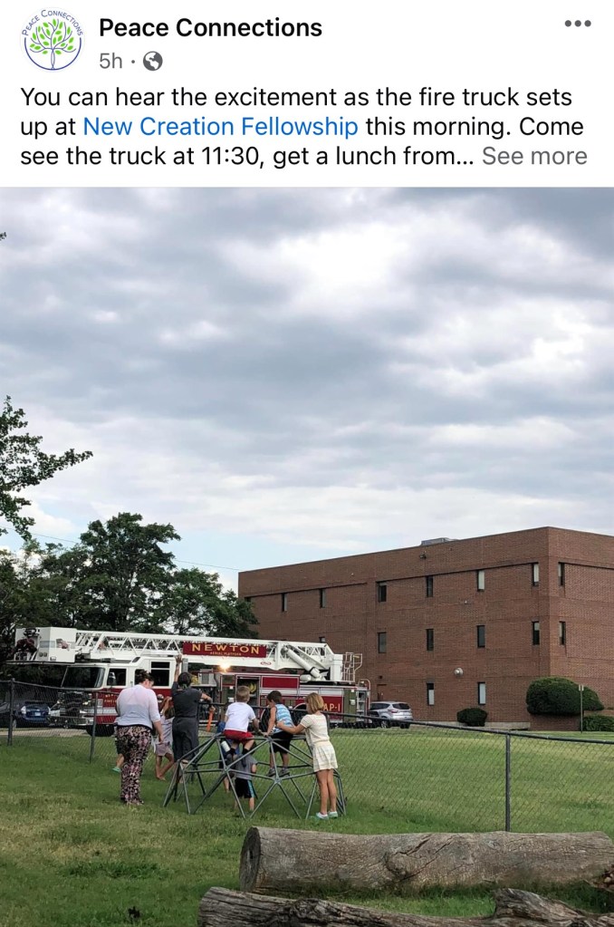 What showed up just outside of our fence today? A real firetruck! The “lunch friends” with Peace Connections arranged to have them come for their last day of SEAK. What a treat to be up close to see the two fire fighters unroll 3 hoses, hook them together, attach one end to the fire hydrant and the other to the truck. After watching for a bit, we ran to the gate to be with Ms Brenda until our grown ups arrived.