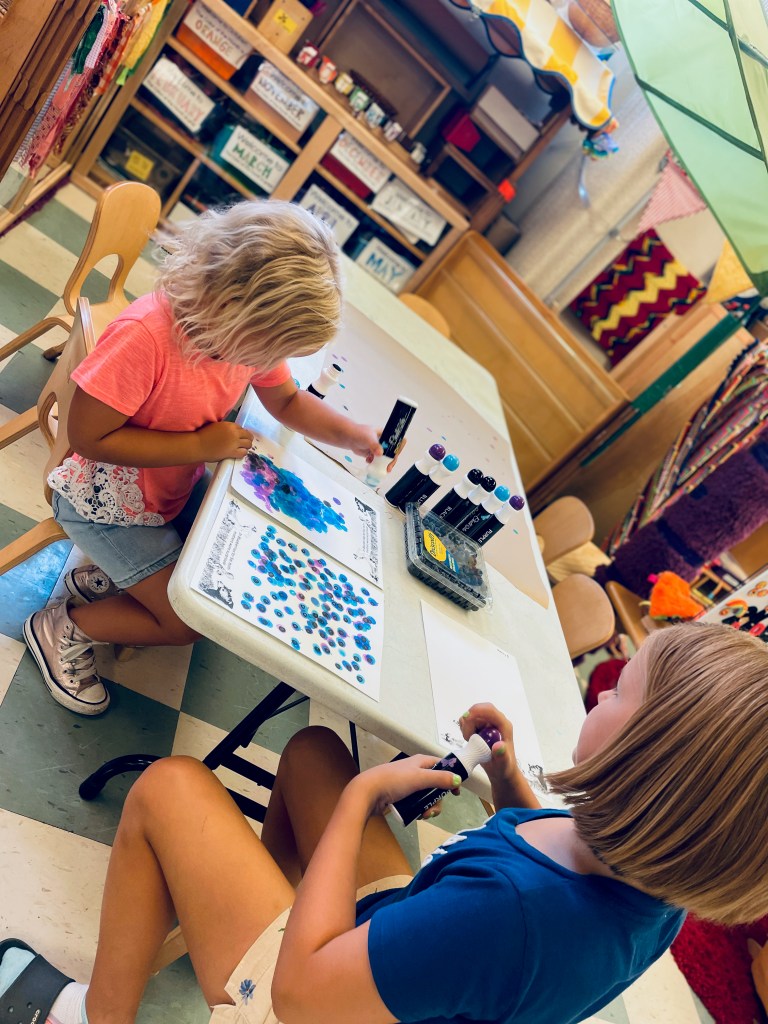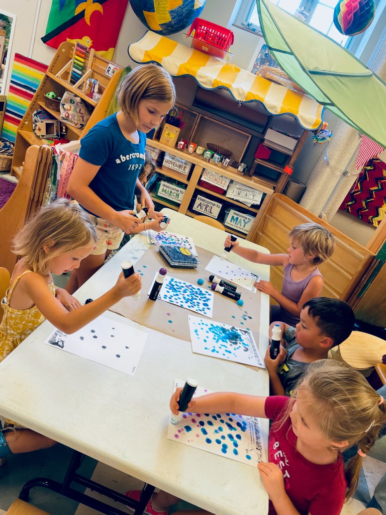 What was the loud banging noise at the beginning of the day? Dot painters! A project that everyone did before Circle Time was trying to match the shade of the real blueberries with our dot painters. Using blue, purple and black shades, there were some very realistic shades! Here is a link to a live video of it!