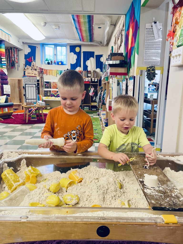 This was the second day for this group of children because they all attended on Tuesday. We missed one friend who is home not feeling well and welcomed two visitors from the State of Kansas who were there for our annual review. After inspecting our facility and reviewing all my files, we were given an all clear Notice of Survey Findings! The children followed our lead and continued on with their play while the workers did their work. Wonderful all around!