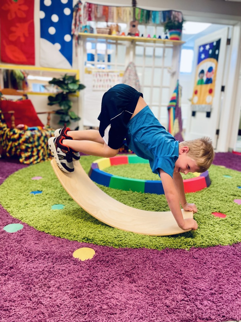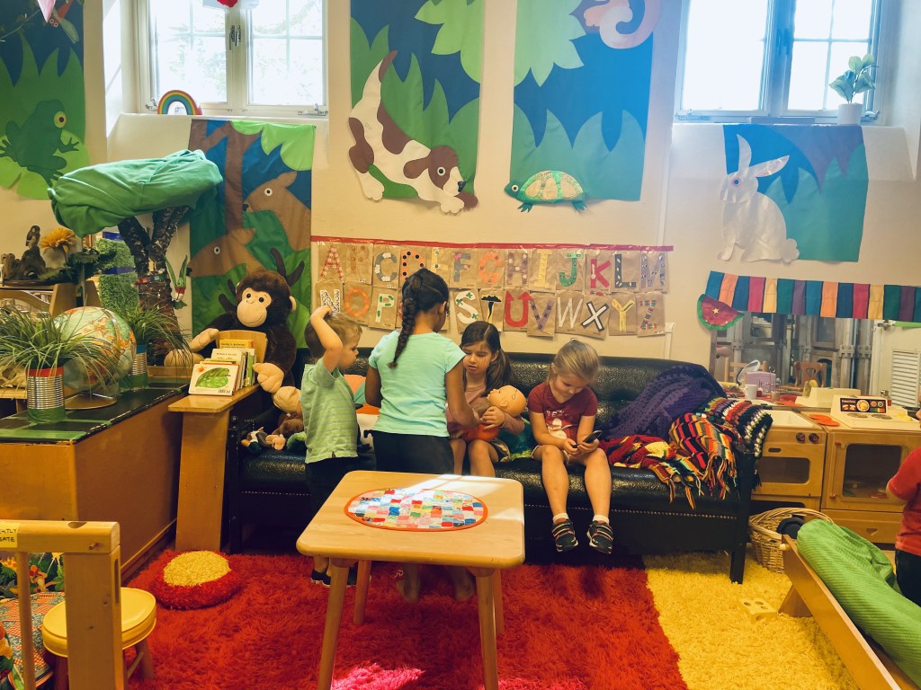 When a child is in the loft they are for sure the tallest one in the room! Today the loft was very busy serving as both a hospital for dolls and stuffed animals as well as the resting spot for people in the musical circus. This class already has a group mentality with children coming in to add layers to the play: 3 children are playing with dolls, one comes over with a play phone and asks if they need her to call the doctor, then another comes over and goes to the loft with a toy computer, then another comes and stands on the loft steps to announce that the loft is a hospital, then several others join to simply be in the loft. Navigating space together is phenomenal to observe.