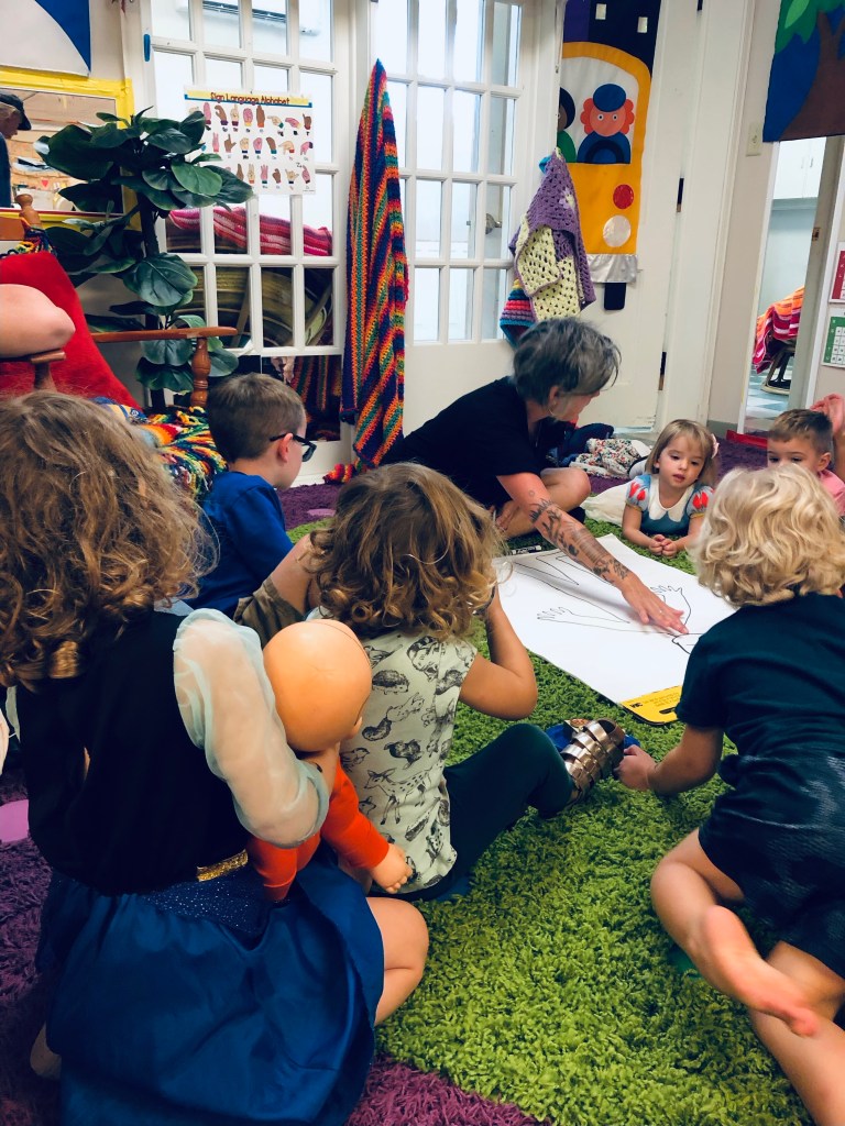 Our Wednesday class has four sibling pairs (three of the younger siblings attend with their caregivers until they turn three). We like to nurture familial relationships in the classroom setting whether it is siblings, blended family dynamics or cousins. Today could have fit in well as an April Fool’s Day with all the funny things… read on to learn more!