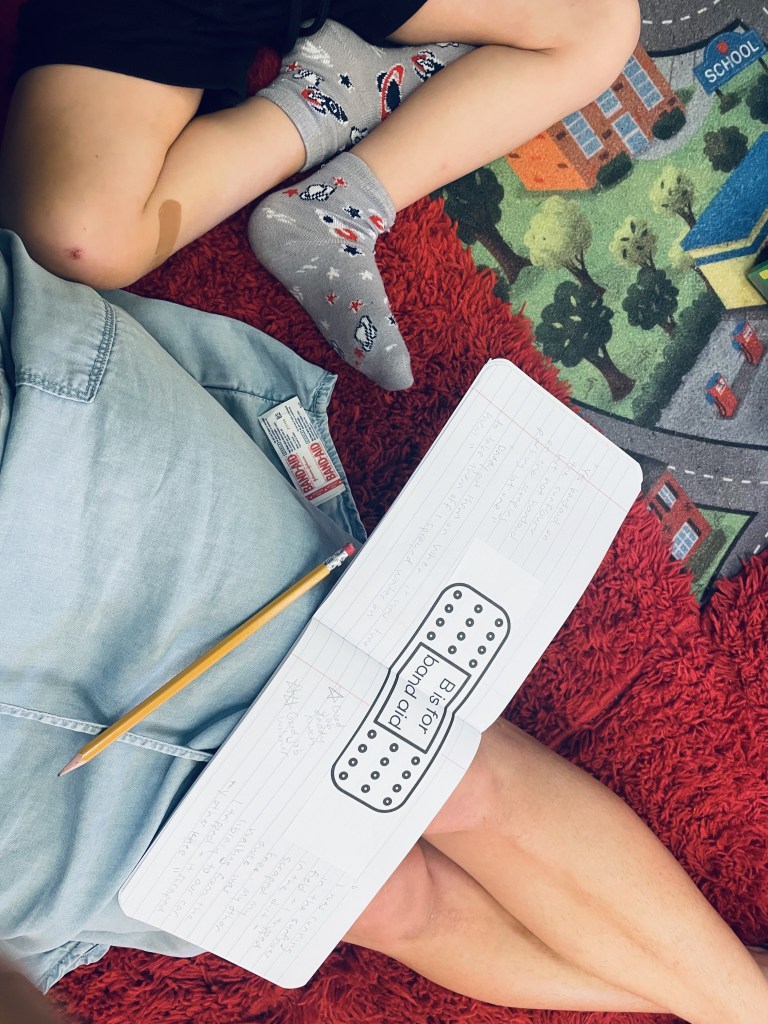Some children put band aids in their journal, some children told us what to write, some children did both, and some children did their own writing.