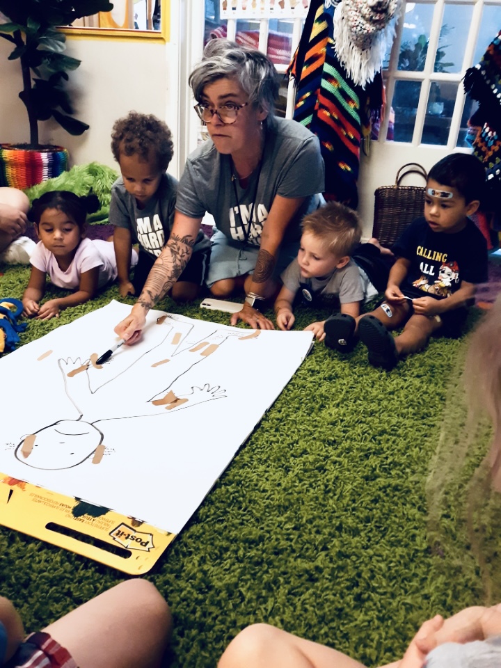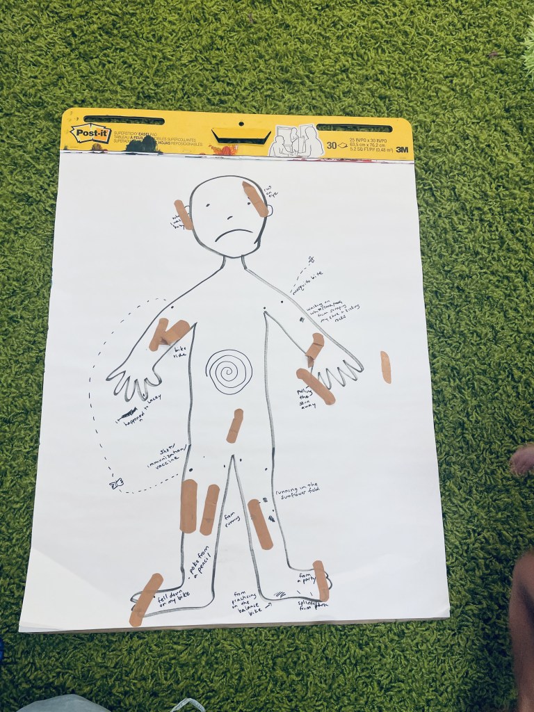 After our conversation during Circle Time about injuries that a band aid could help with, we explored the difference of a stomachache that a band aid couldn’t help with.