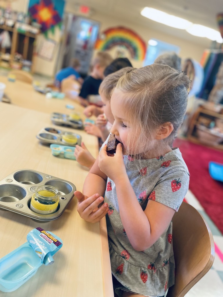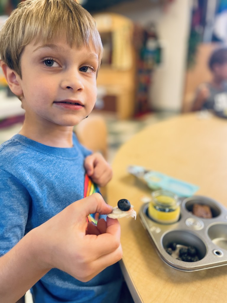 Today was a sweet day made sweeter by celebrating a birthday and having free reign on band aids. Grandma Bonnie has a routine of giving children turns to help in the kitchen which more and more are getting in on. This class continues to spend a lot of time at the Puzzle Corner and likes to share their successes. Read more to find out about our day.
