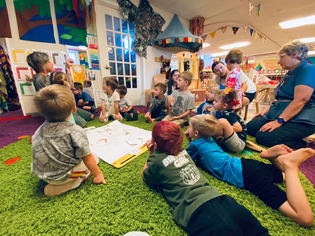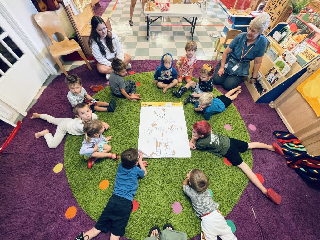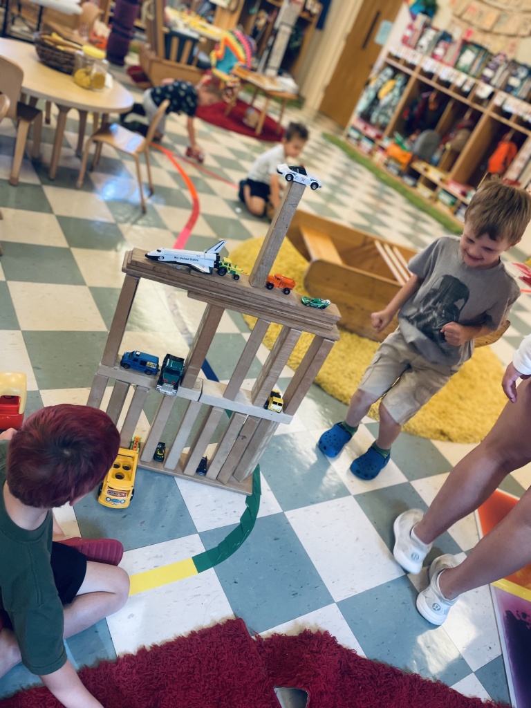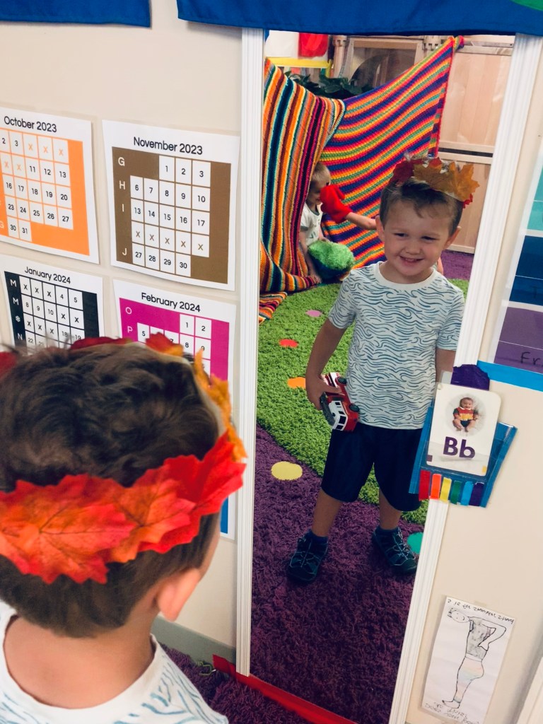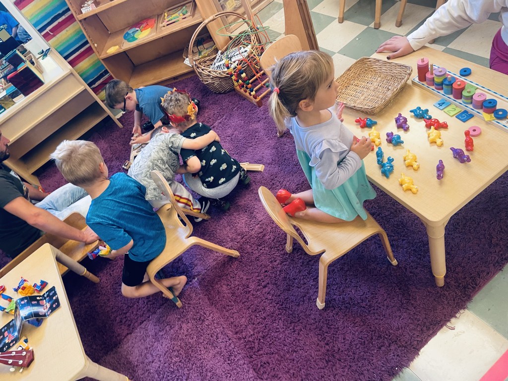 These sweet Friday friends are a fun bunch. Over half the class only attends on Fridays and the other half comes for their third time, so this is a unique day to pull everything together for all of us. There is plenty of September work happening and exploring all areas of the school inside and out. We had 4 volunteers today which means we were at nearly 1 adult for every 2 kids. Incredible!