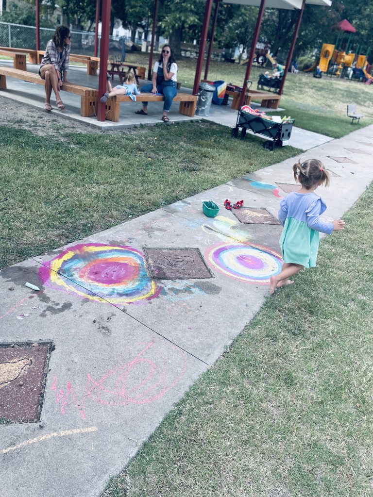 We could hear the wind before we even went outside and then we could feel it and see evidence of it. In the wonderful wind we used chalk and water, made mud stew, sent the tires down the slides, found bugs and gathered acorns and gingko fruit.