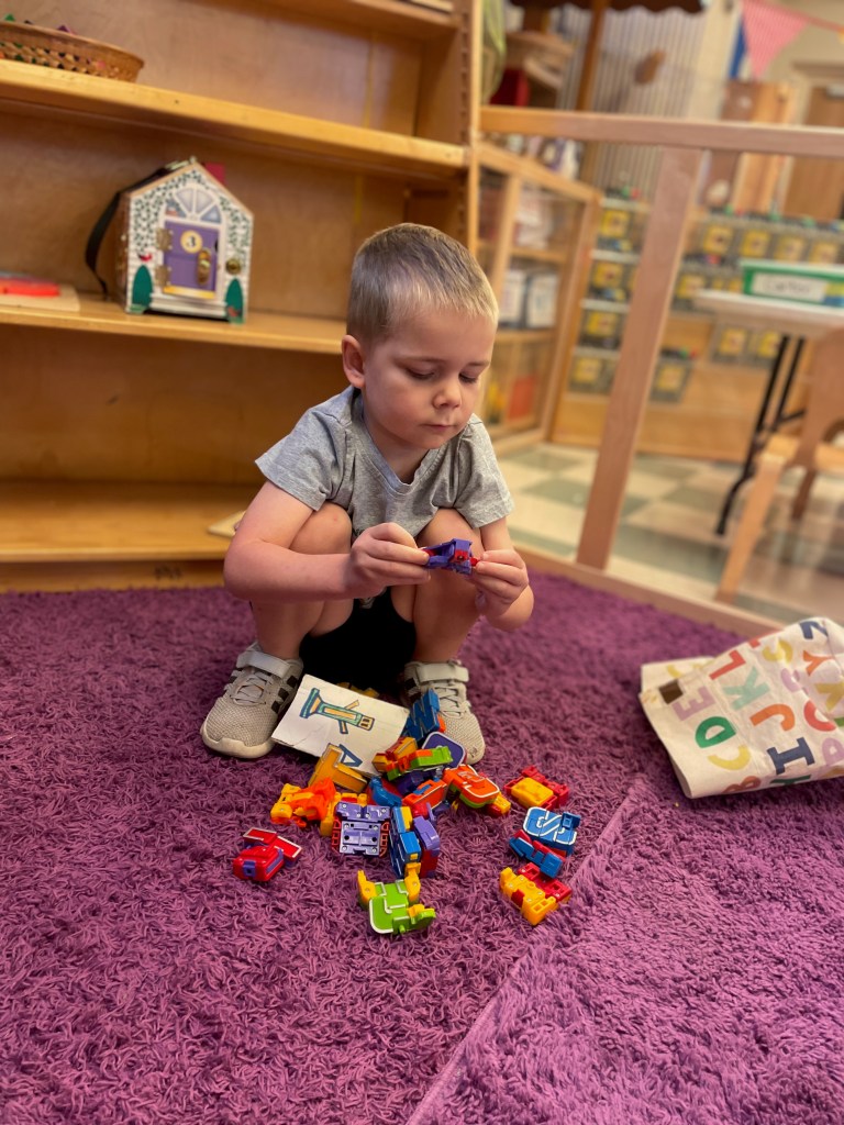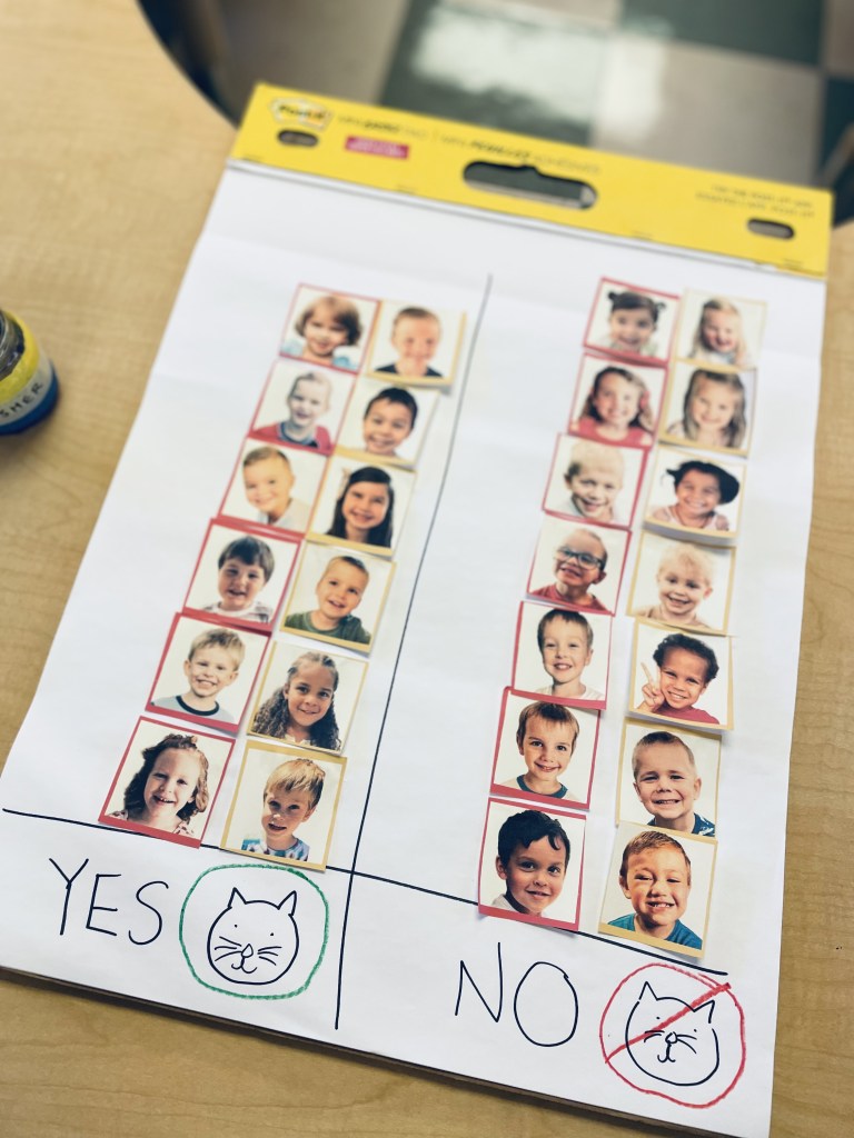 We played “What’s Missing” at Circle Time with 3 cats and 3 cows. This class is sharp! The next time we’re together on Thursday, those 6 creatures will be at the play dough table!