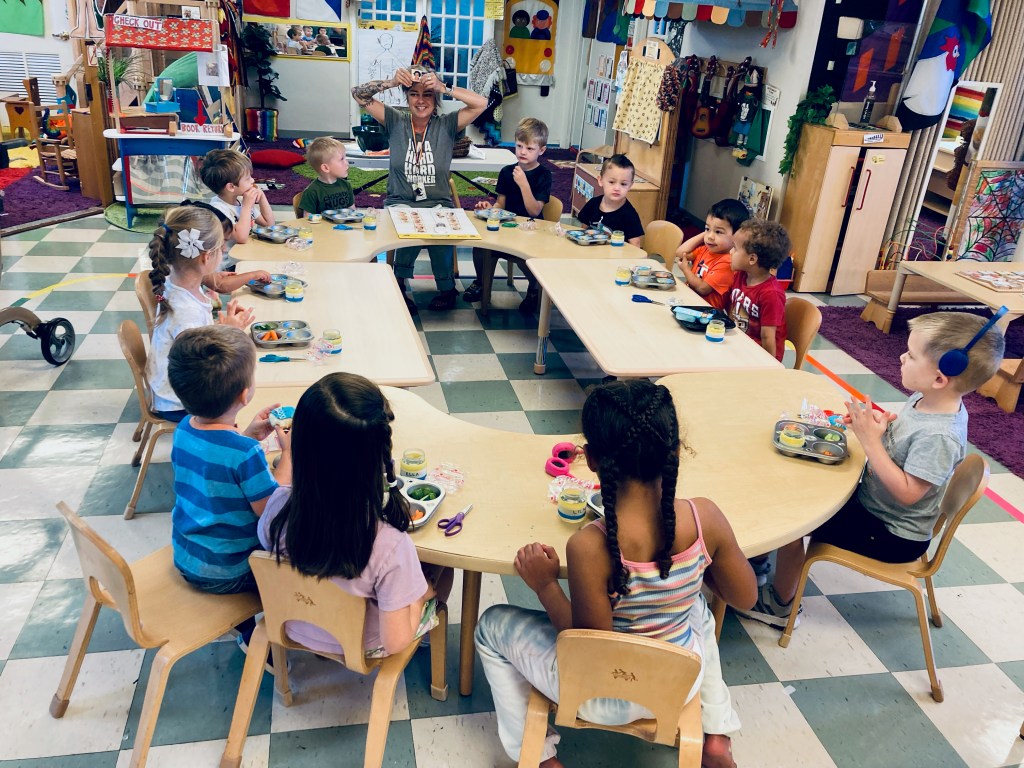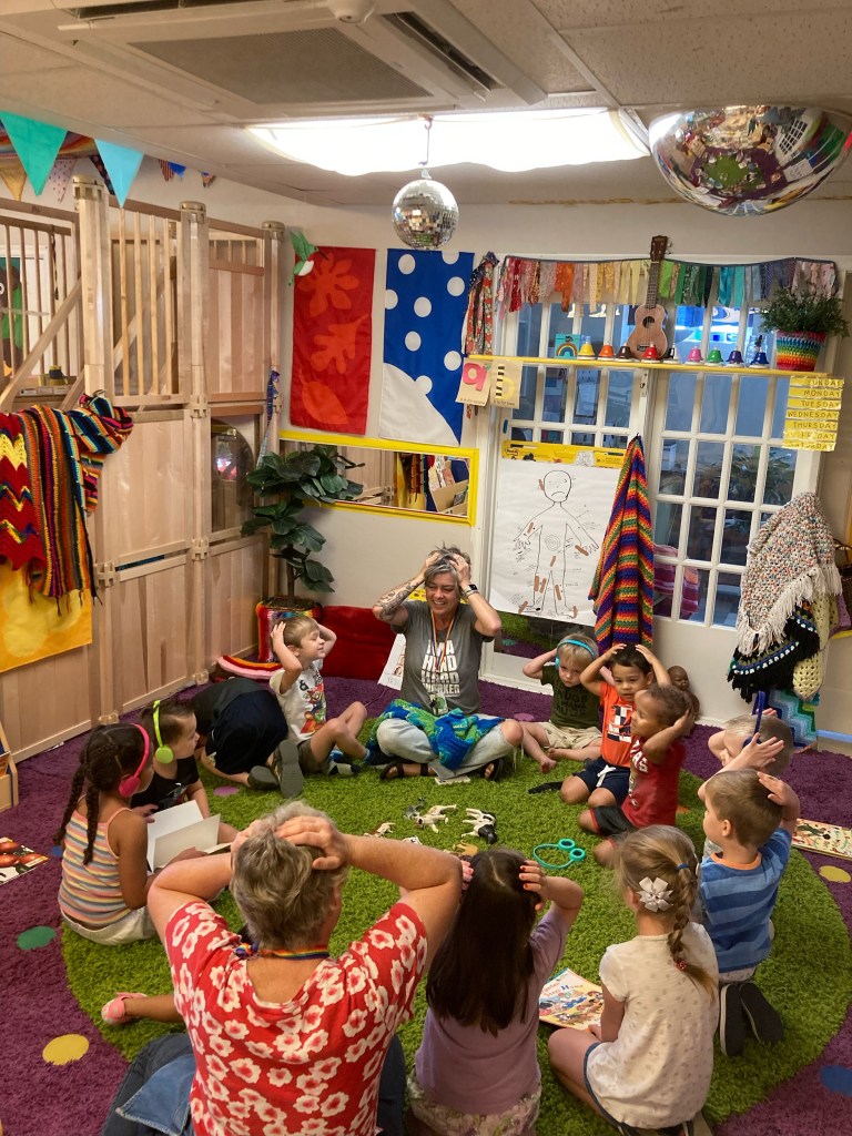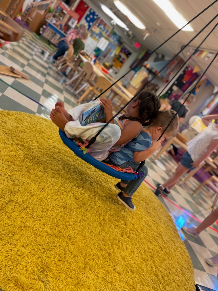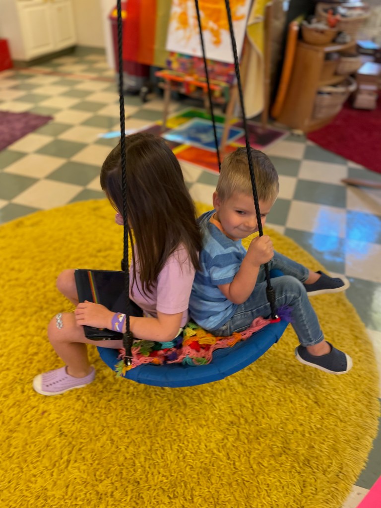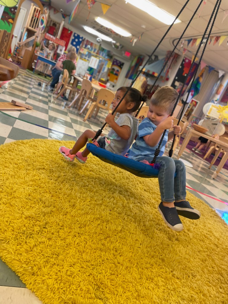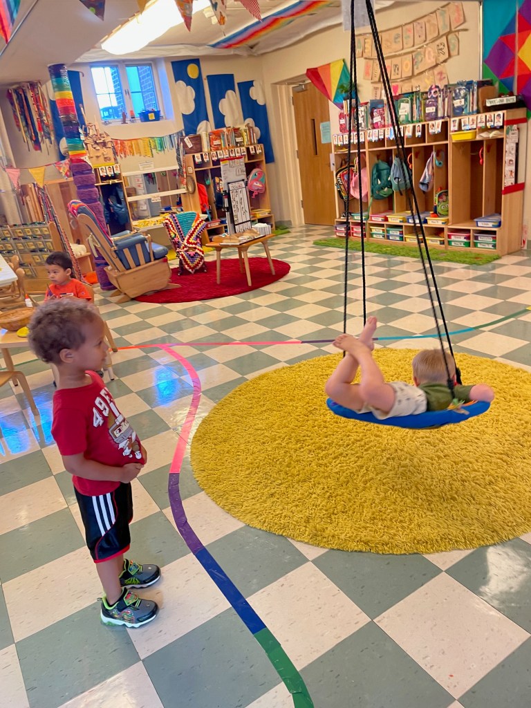 Our Tuesday “Yellow Day” Class settled in easily to our third week of school. As a teacher I trust my intuition to introduce new systems or experiences. That happened a few times today. Read on to learn more! One new element is the swing!