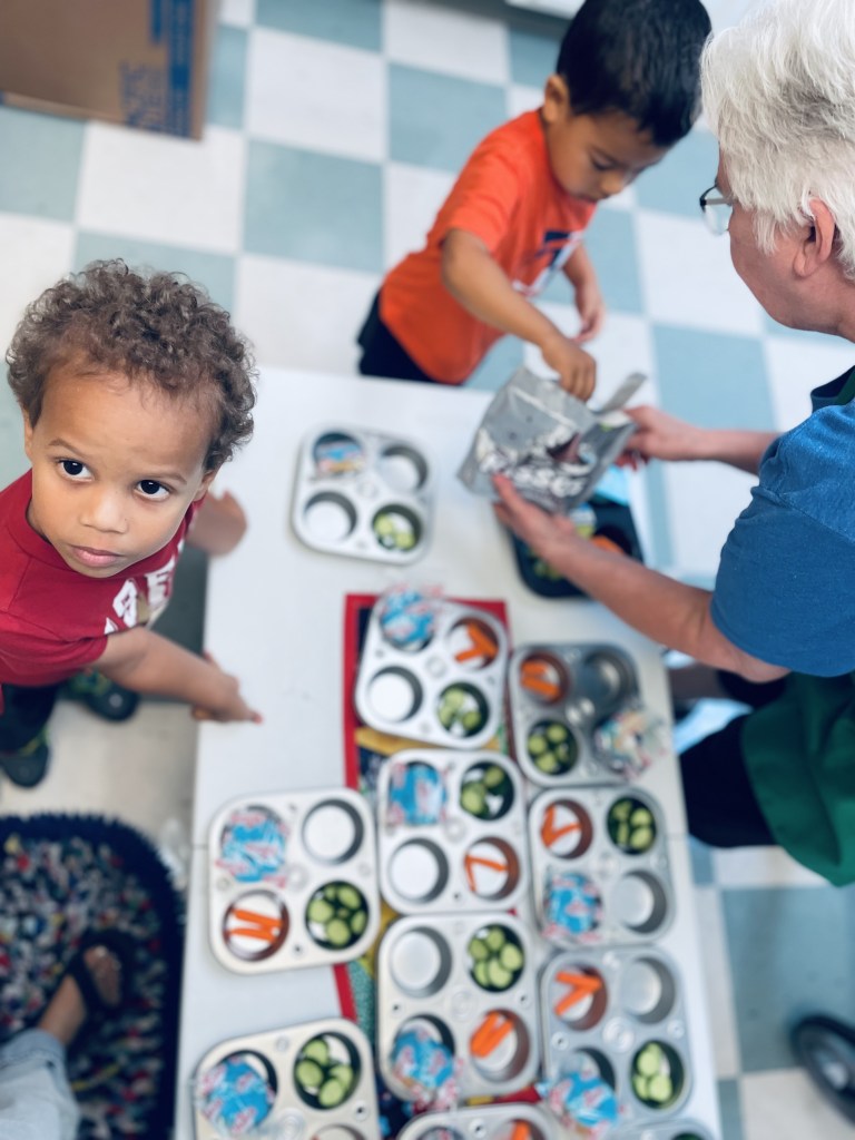Grandma Bonnie again made sure anyone who wanted to help get snack ready could do so. There’s a lot of hand washing on Tuesday and Thursday!