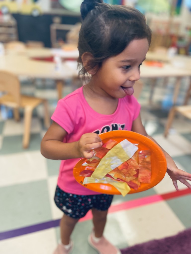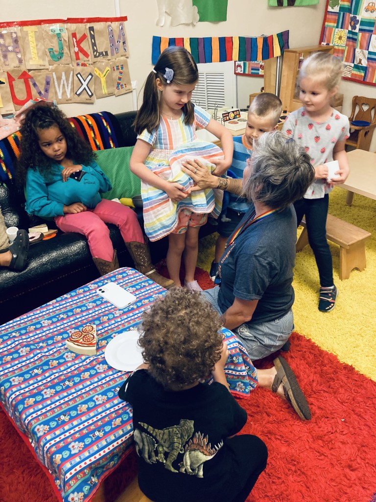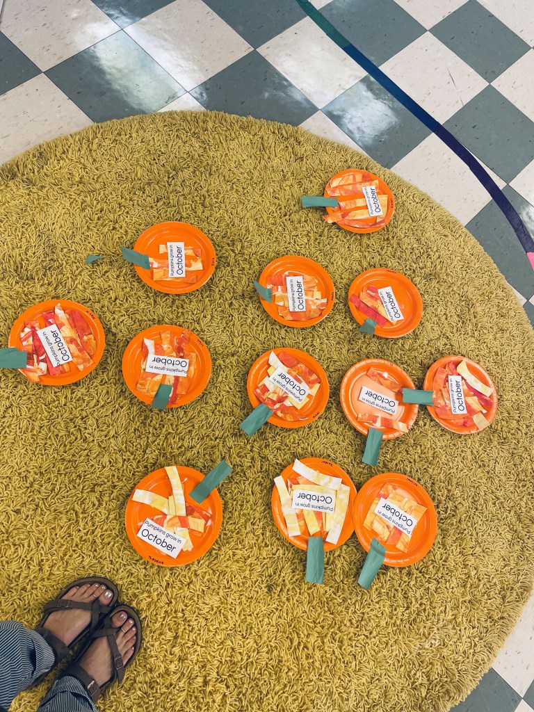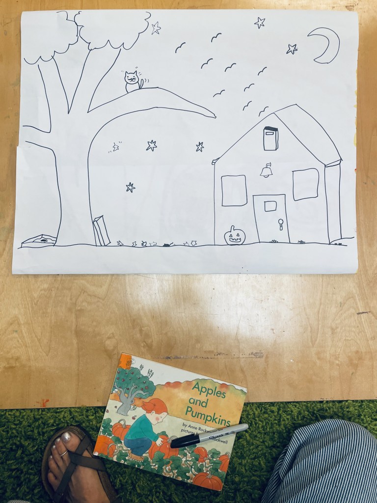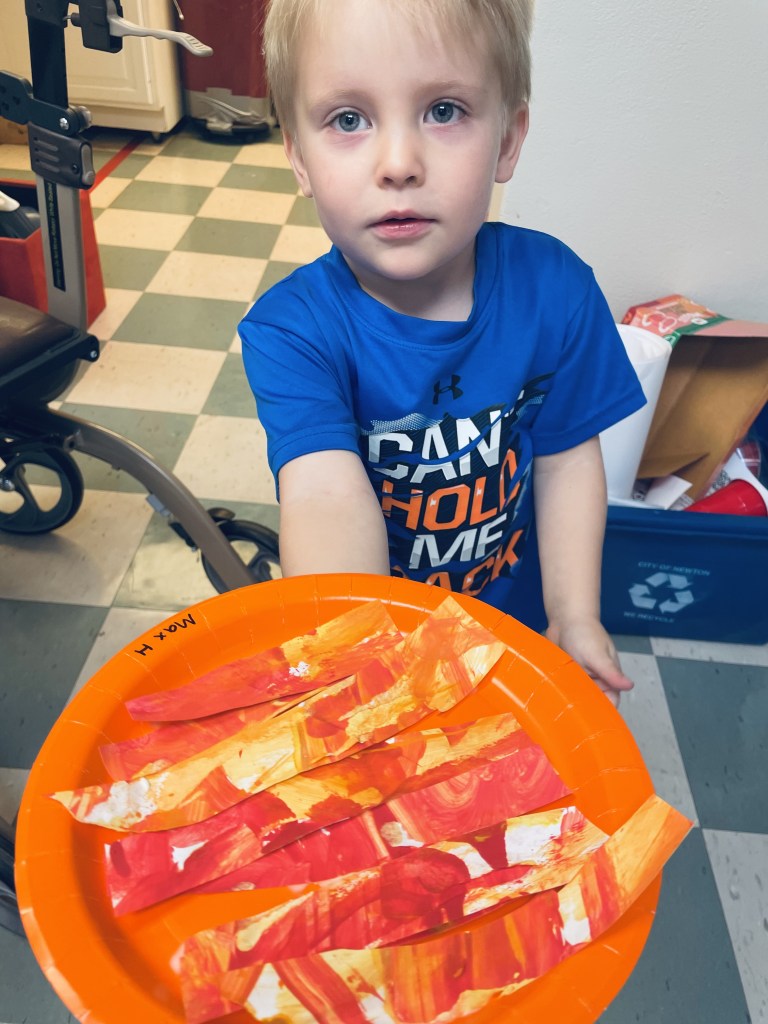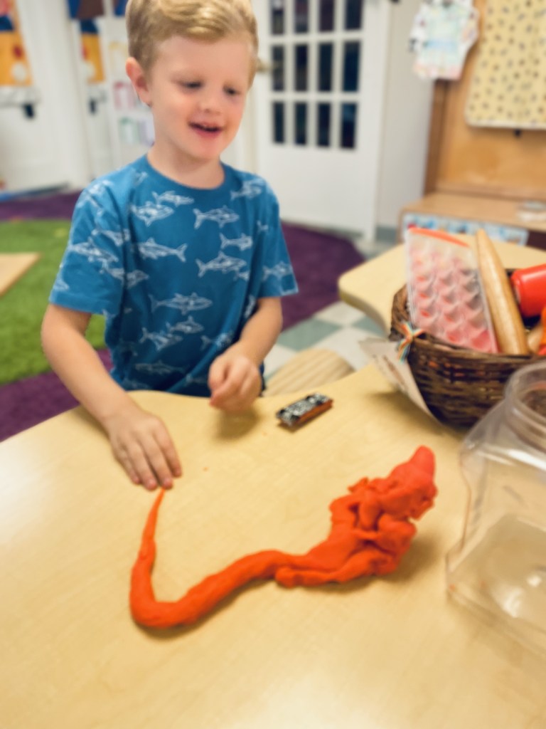 Our Thursday “Blue Day” Class was back together again! The play was delightful and we got a lot of things done today…all in honor of D Week, the color orange and October.