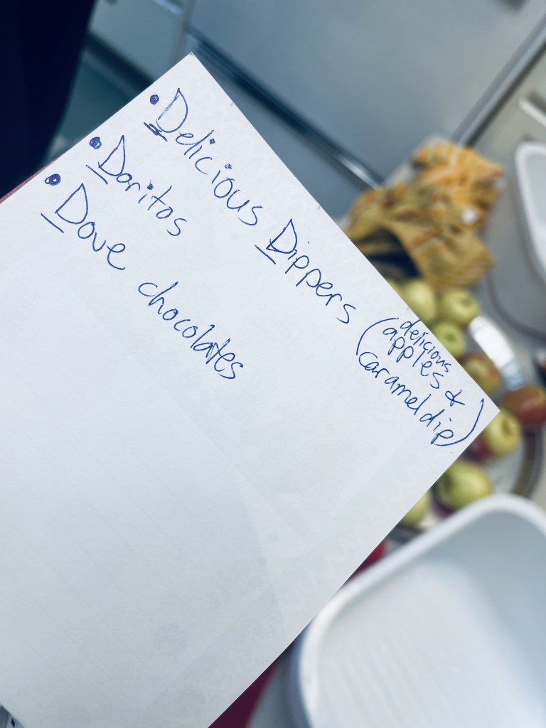 Along with the delicious apples, we had caramel dip, Doritos and Dove chocolates. It was a very fun and cozy snack time. Thank you, Heath!