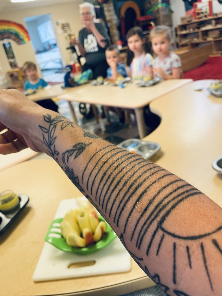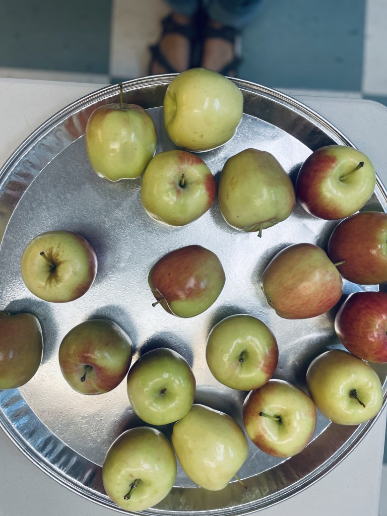 From using Heath’s apple cutter! The apples were so juicy that juice flew every time.