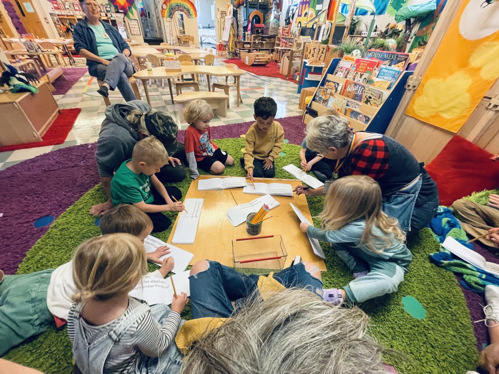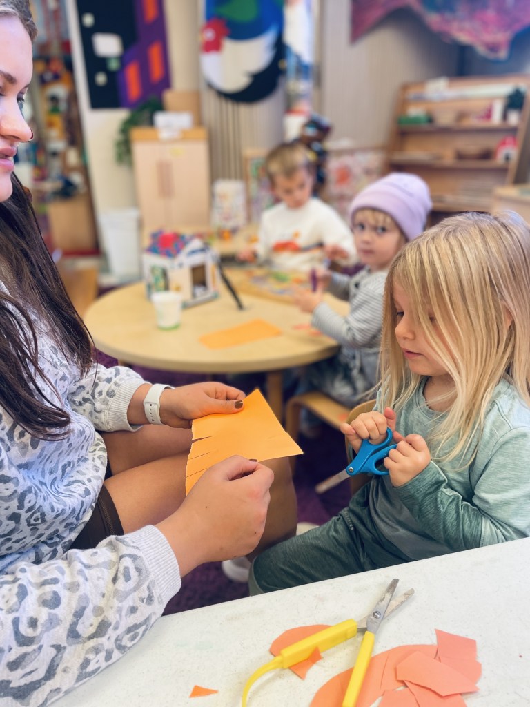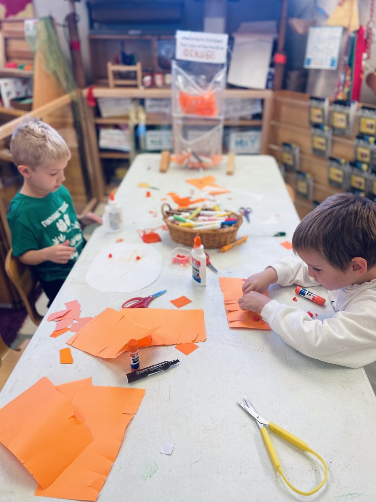 We always have scissors and glue bottles available and today’s class made good use of them. After spending at least half of her time cutting, one friend had an entire journey with scissors going from 2 handed to one handed scissor work