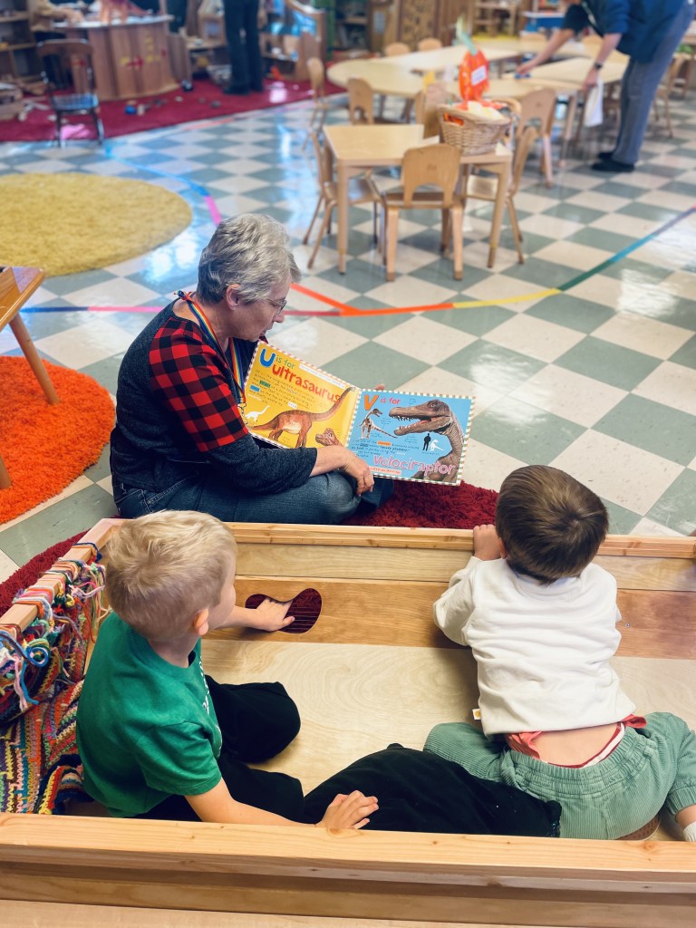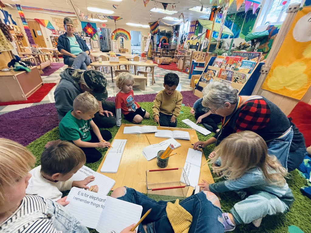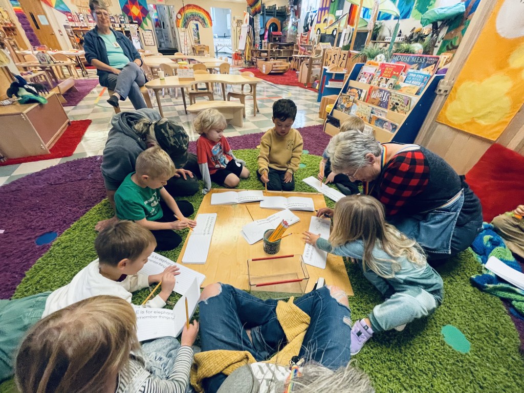 Our Wednesday “Green Day” Class enjoyed each other even though a few friends were gone today. We looked at last week’s “In the dark” picture, using our memories to recall elements of it.