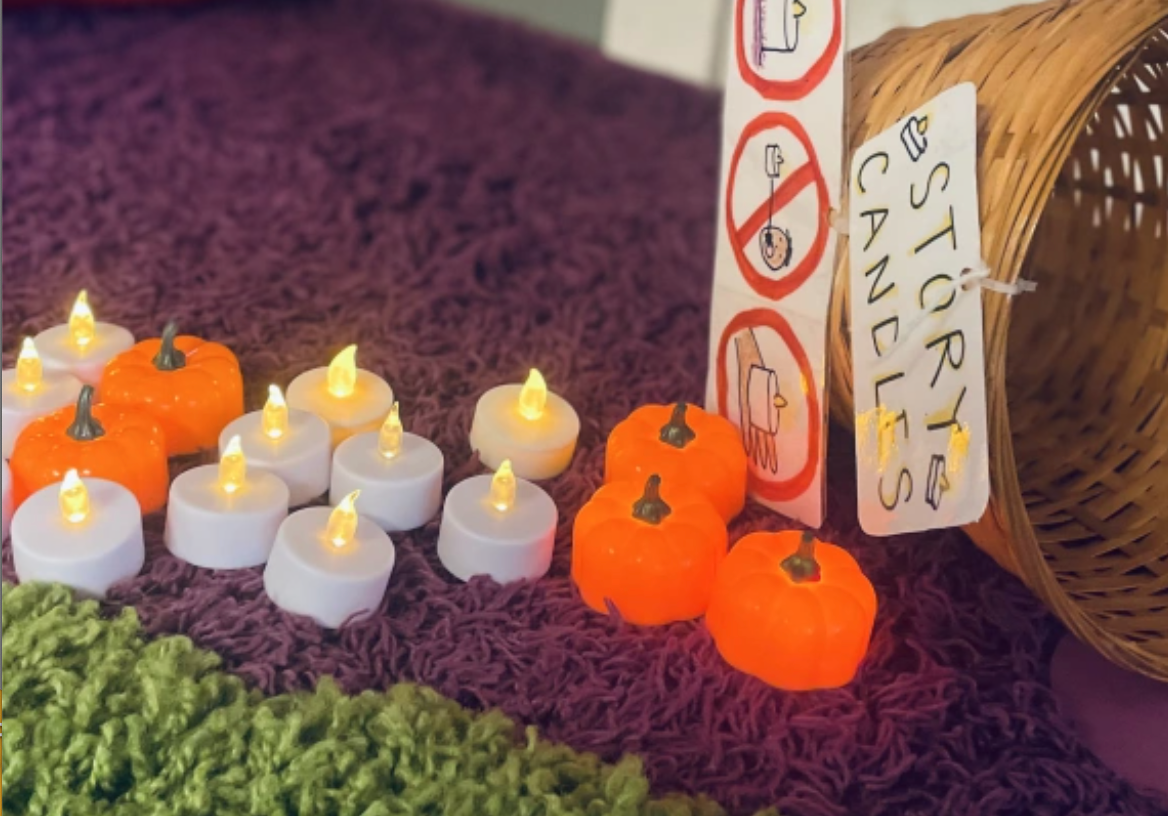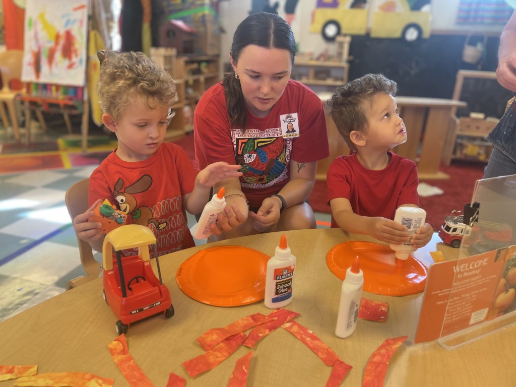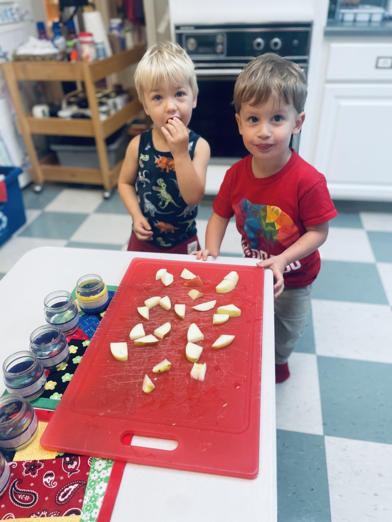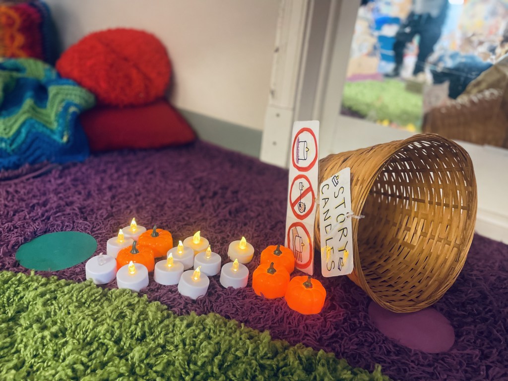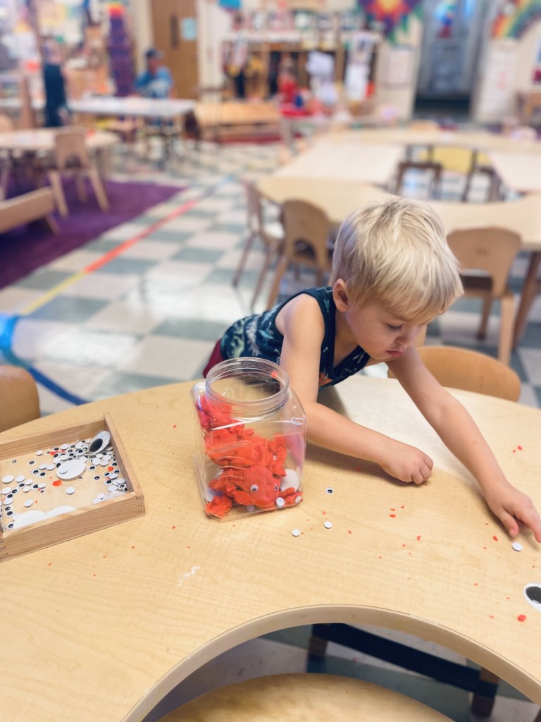 There were alphabet projects, rainbow creations, apple cutting projects, pumpkin projects and freeform work at the Project Table. These hands are getting stronger every day with all the glue bottle squeezing.