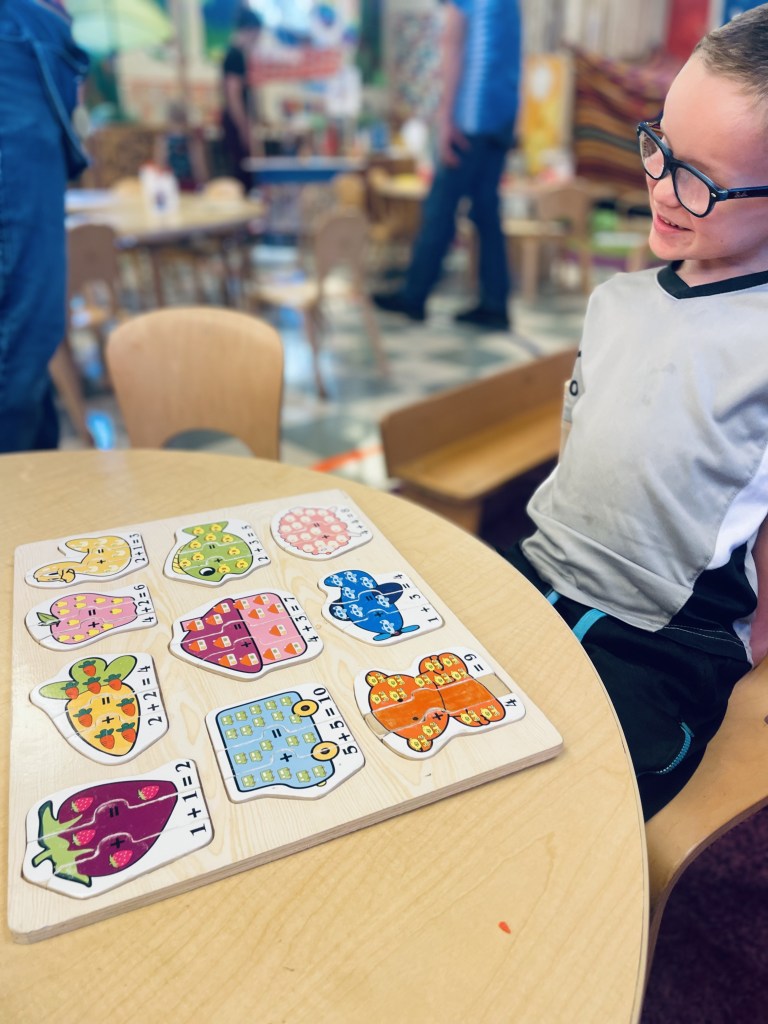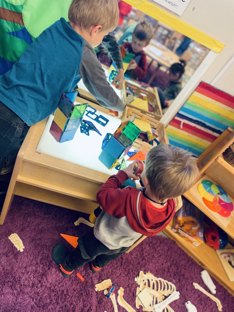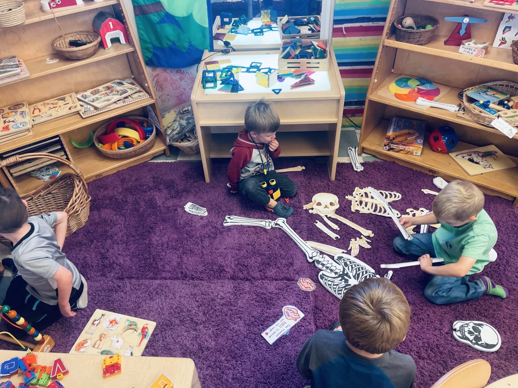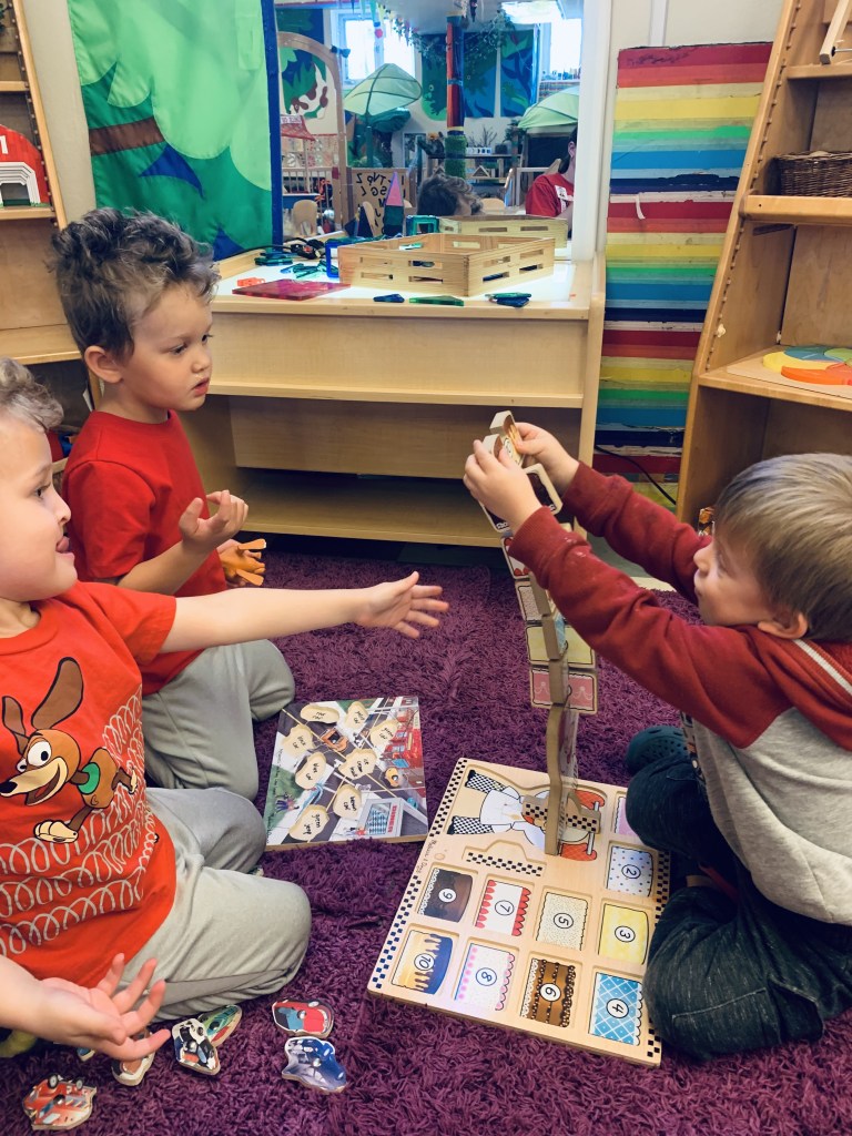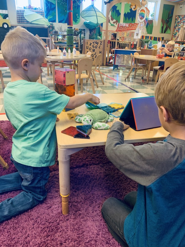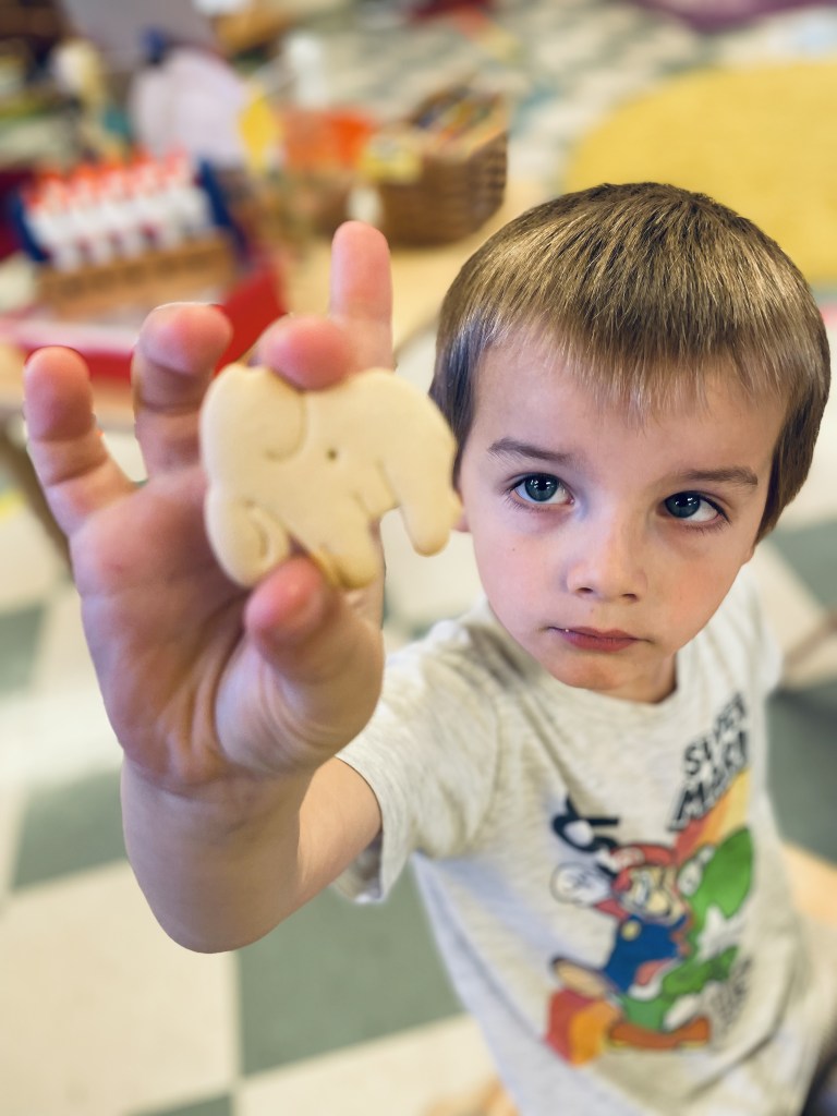 Our Friday “Purple Day” Class finished E week with ease! We played hard inside and out, had a new routine with doing our Journals together and these friends carried their own snack trays from the kitchen to the Big Table! The Puzzle Corner was very busy with friends having success with some of the hardest puzzles we have! Jacob was our Line Leader and an excellent gate rattler!