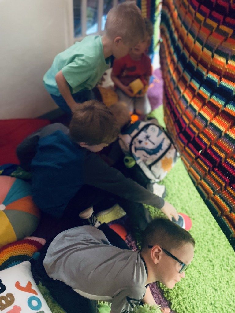 These friends excelled in their ability to pause and get very quiet, an important safety skill even if they don’t realize that they’re doing it! Here are a couple of videos of the quiet magic: