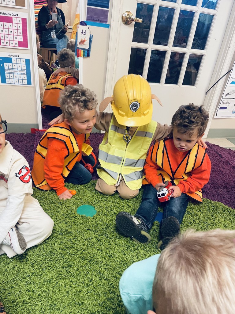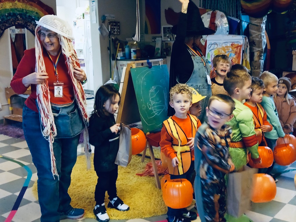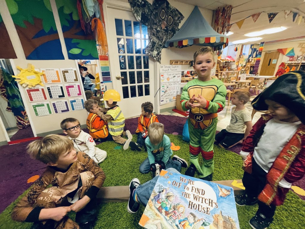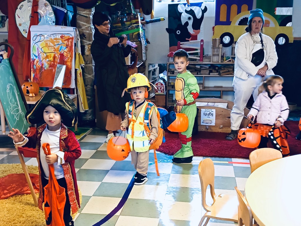 Children love looking at the pictures of themselves and friends remembering the costumes they wore or told me about. Today we saw superheroes, dinosaurs, Woody, construction workers, fire fighters, a Ghostbuster, a ghost, a pirate, Rafael, a butterfly princess and Rubble (who stayed in character most of the day).