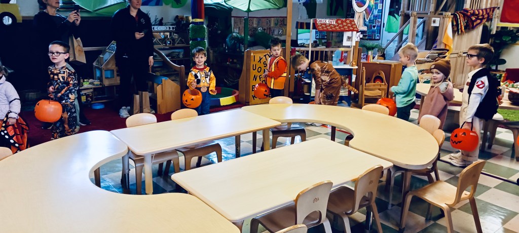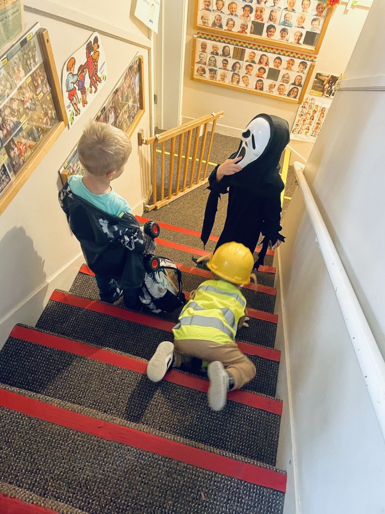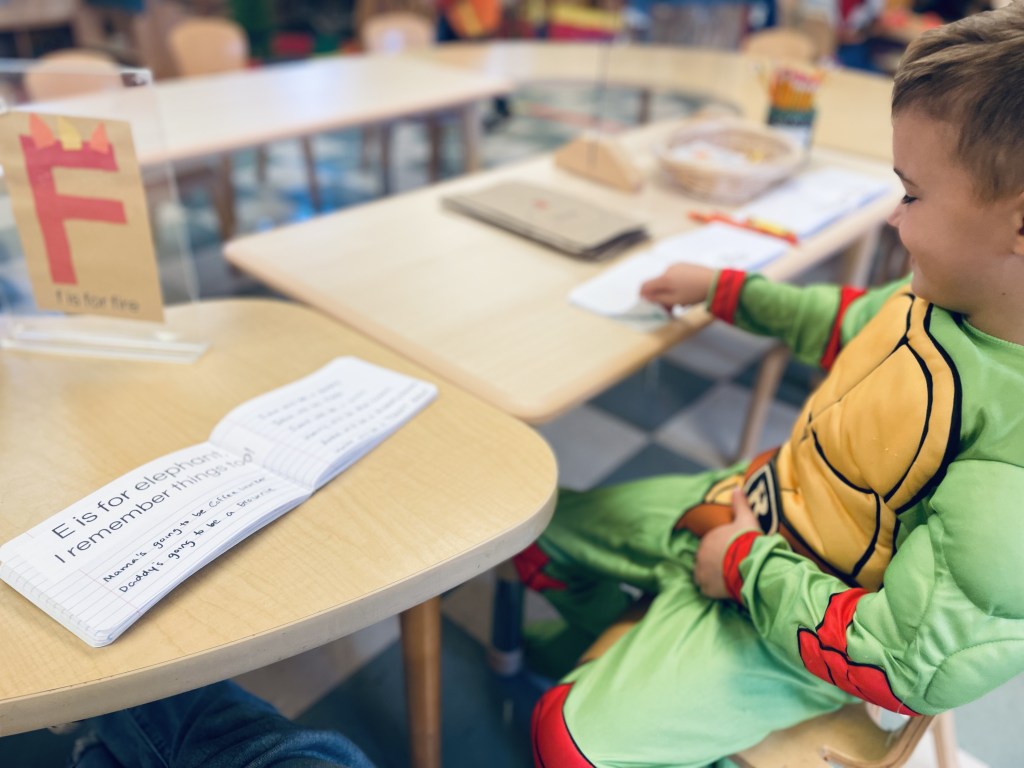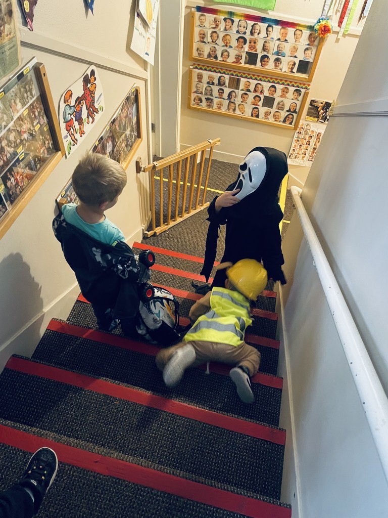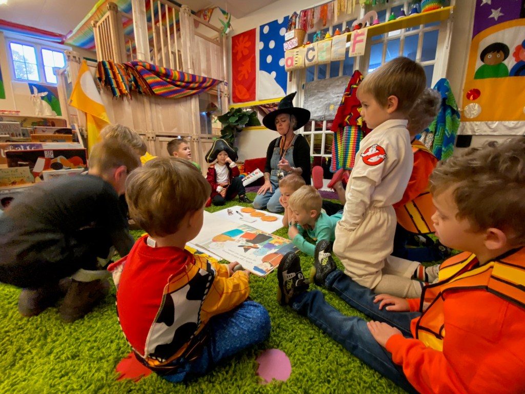 Children love looking at the pictures of themselves and friends remembering the costumes they wore or told me about. Today we saw superheroes, dinosaurs, Woody, construction workers, fire fighters, a Ghostbuster, a ghost, a pirate, Rafael, a butterfly princess and Rubble (who stayed in character most of the day).