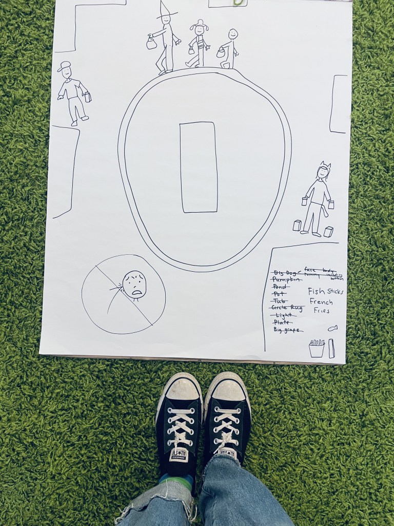 There were a lot of clever guesses what this blob shape could be which you can see in the corner (with dog bum gaining the most giggles). It was a drawing in anticipation of our Costume Parade!