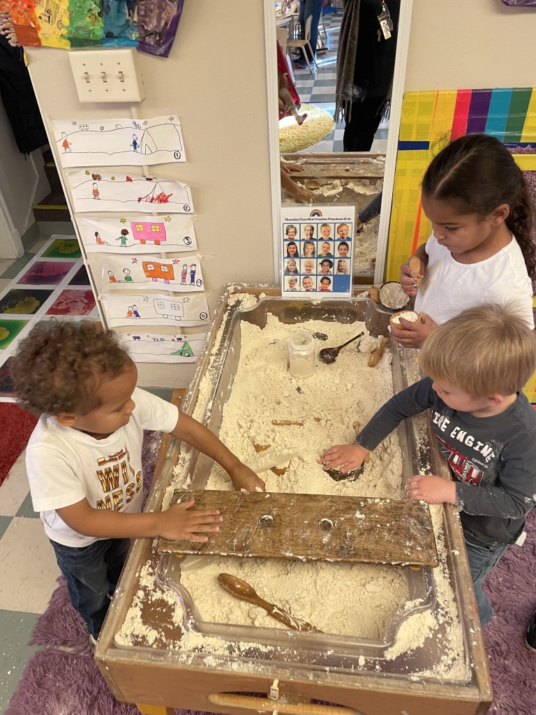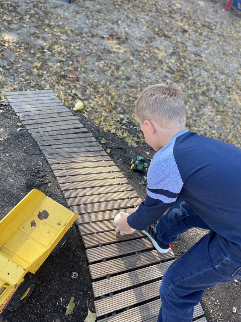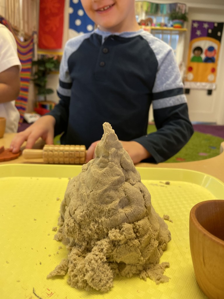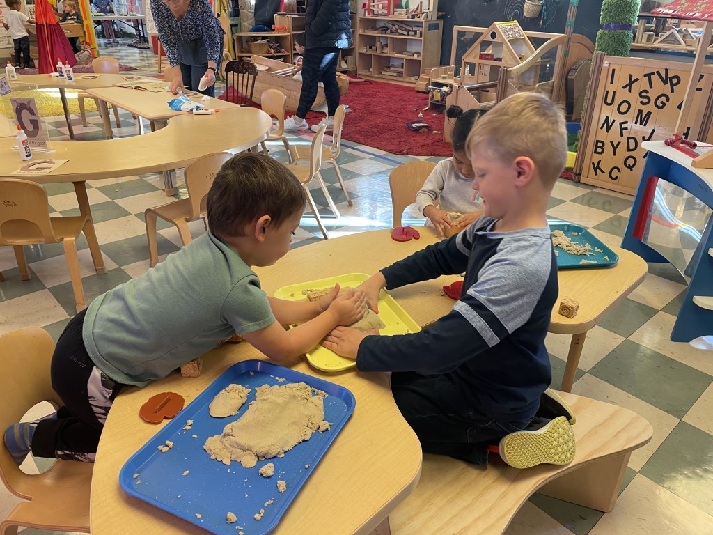 Our Thursday “Blue Day” Class welcomed November with play inside and outside today. It was their first time to notice all the things that switched from orange to brown around the room. We have kinetic sand that got a lot of use and then used our hands to be a pretend turkey! In our class, everyone’s hand had 4 fingers but this poem can be adapted to any hand shape.