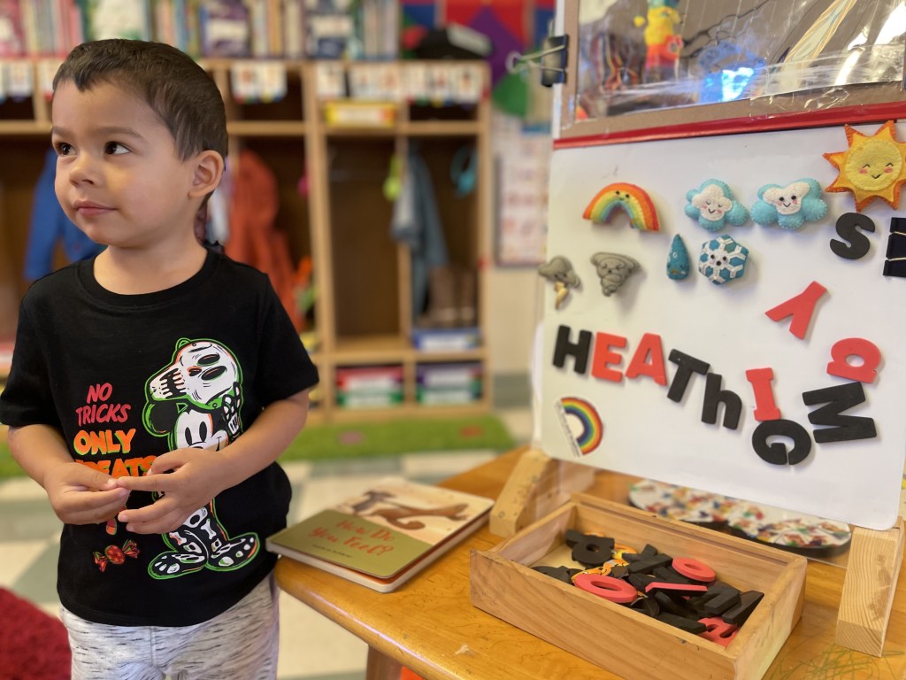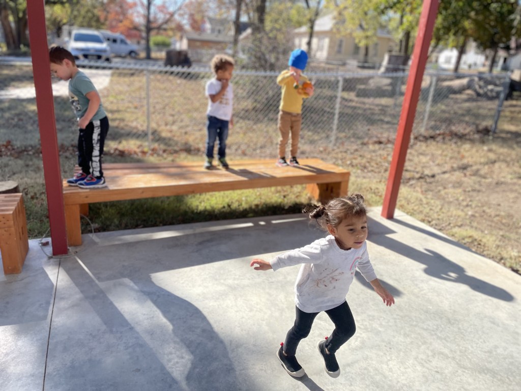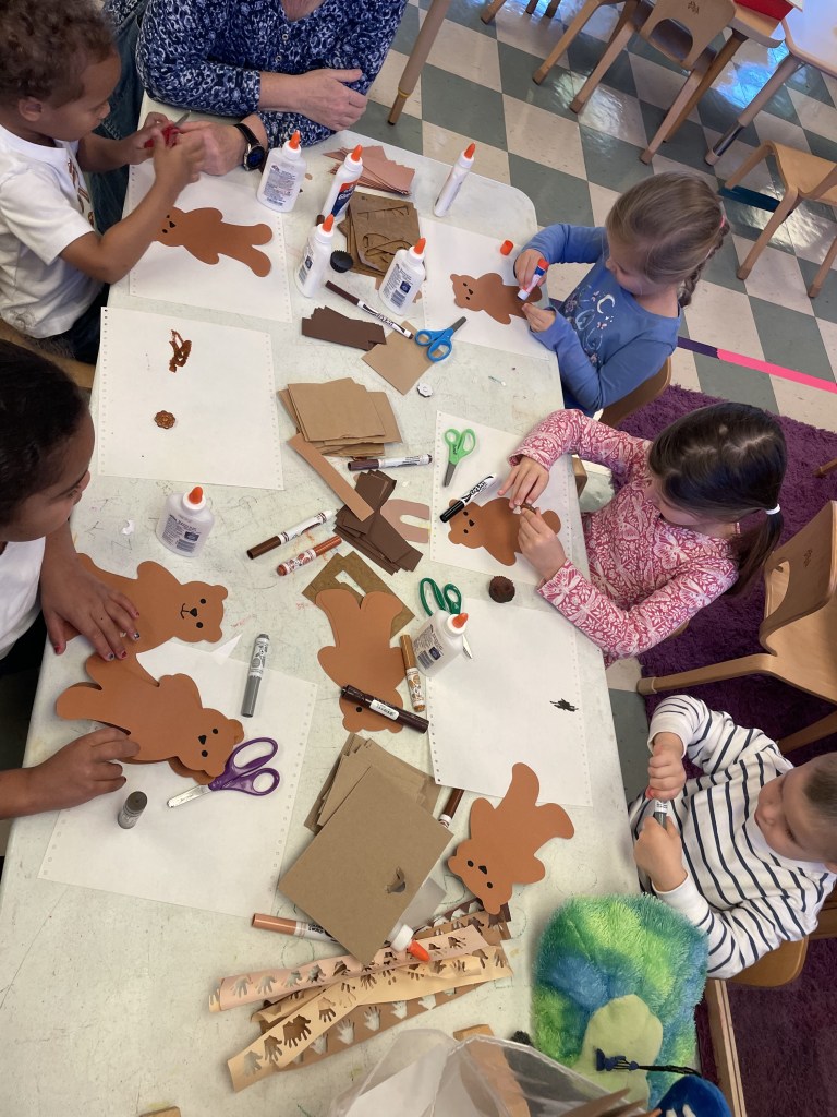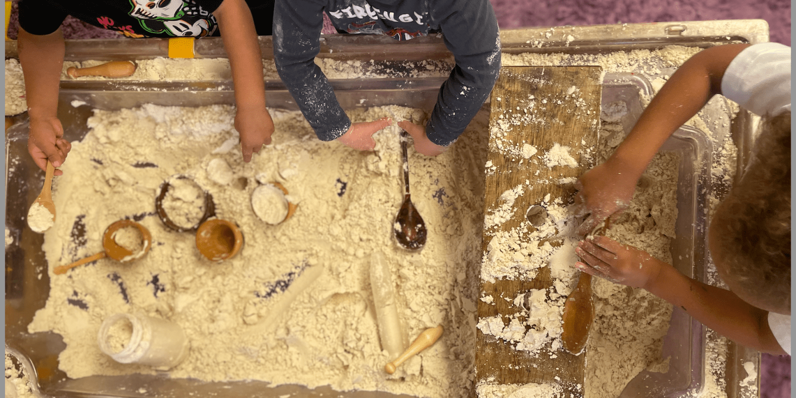 Our Thursday “Blue Day” Class welcomed November with play inside and outside today. It was their first time to notice all the things that switched from orange to brown around the room. We have kinetic sand that got a lot of use and then used our hands to be a pretend turkey! In our class, everyone’s hand had 4 fingers but this poem can be adapted to any hand shape.